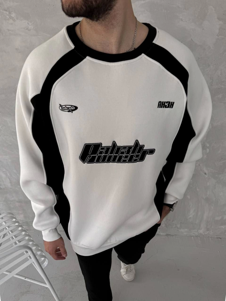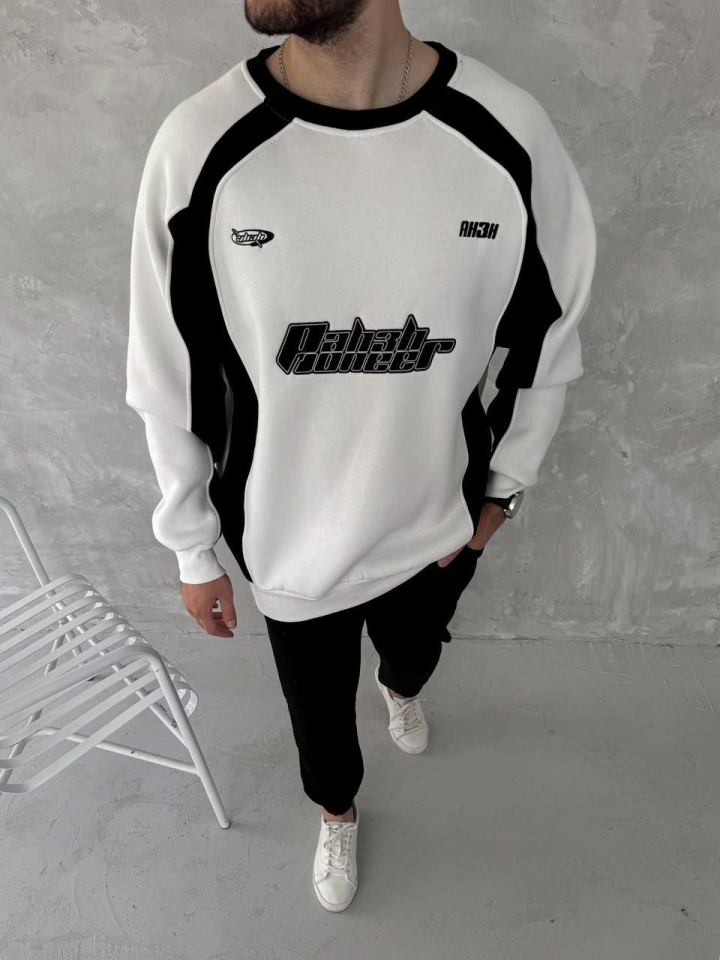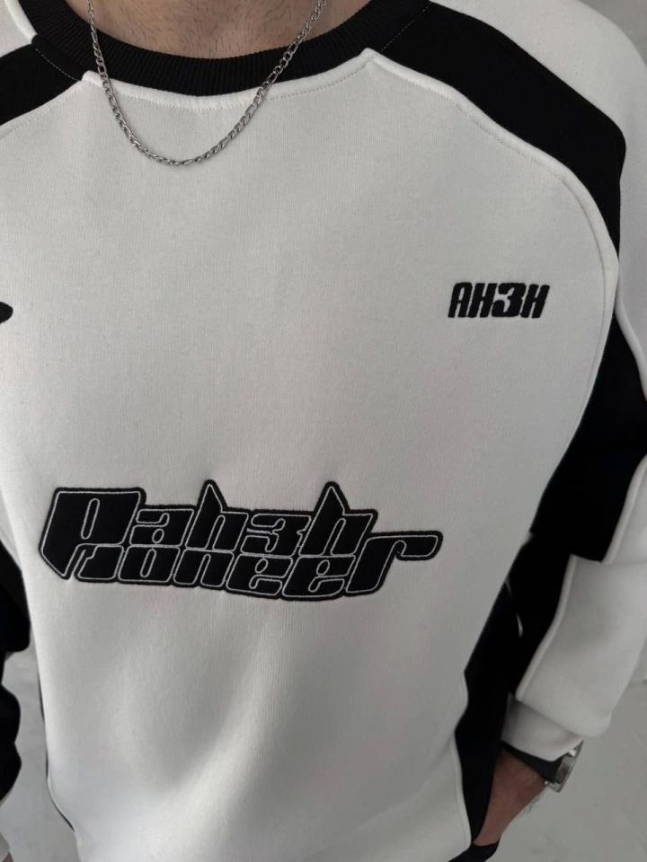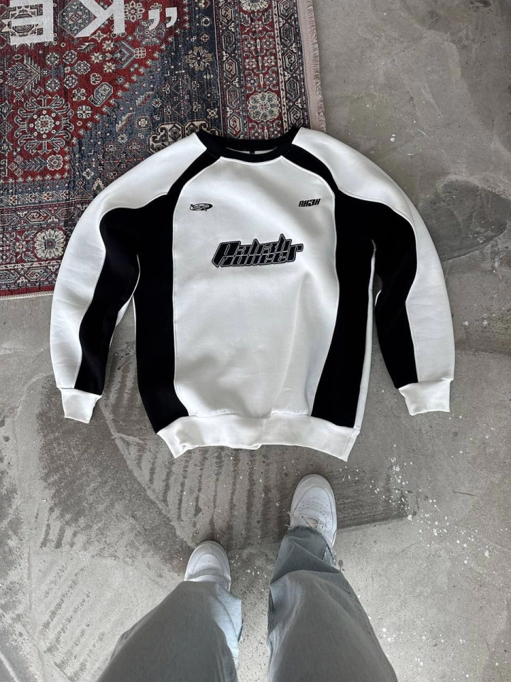Kışlık Nakış İşlemeli Bisiklet Yaka Parçalı SweatShirt – Beyaz