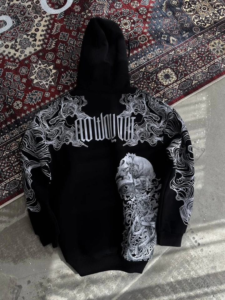 Kışlık Üç İplik Baskılı Kapşonlu SweatShirt – Siyah