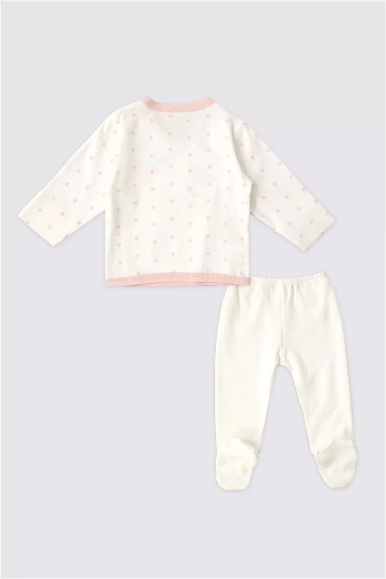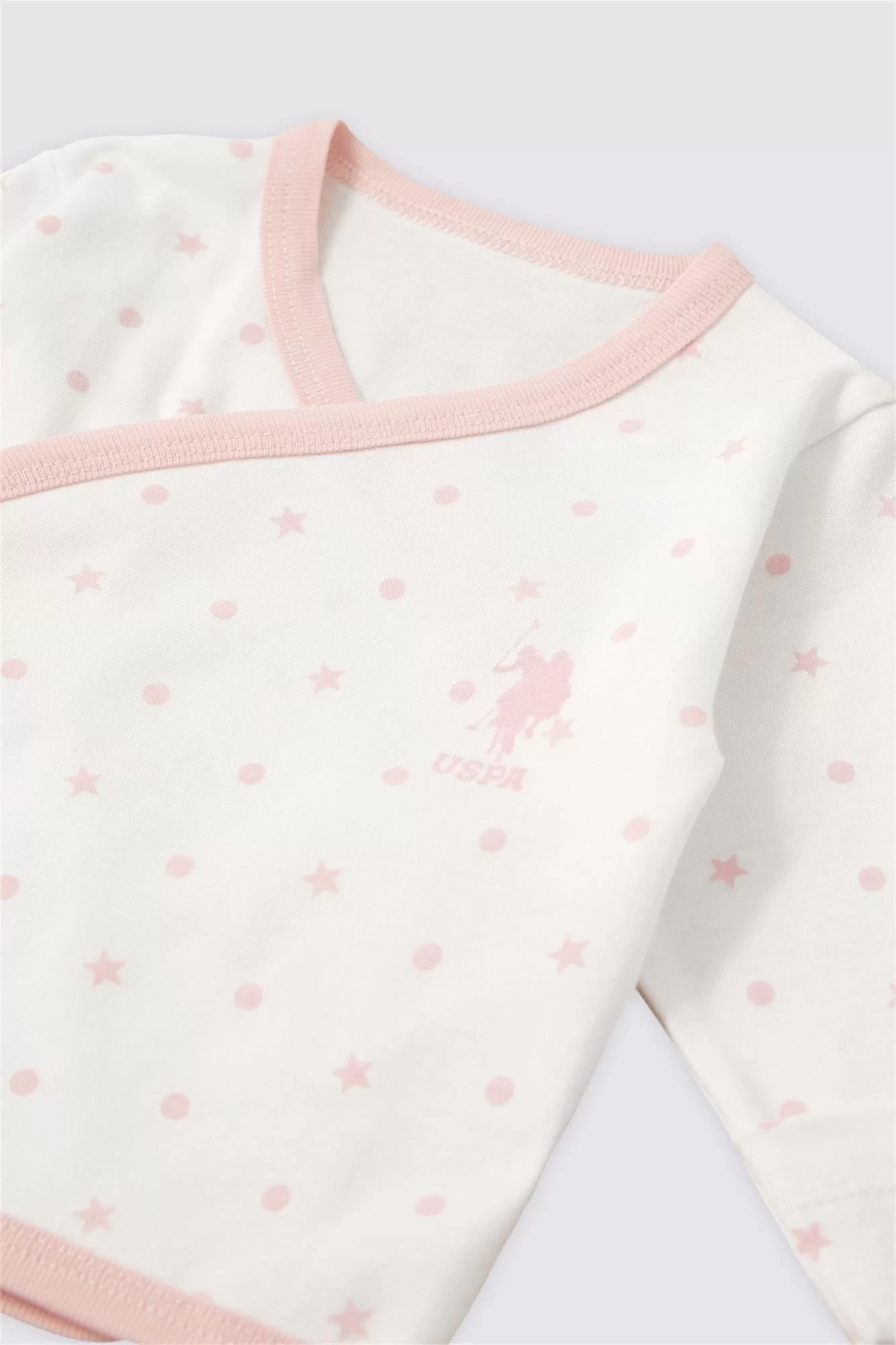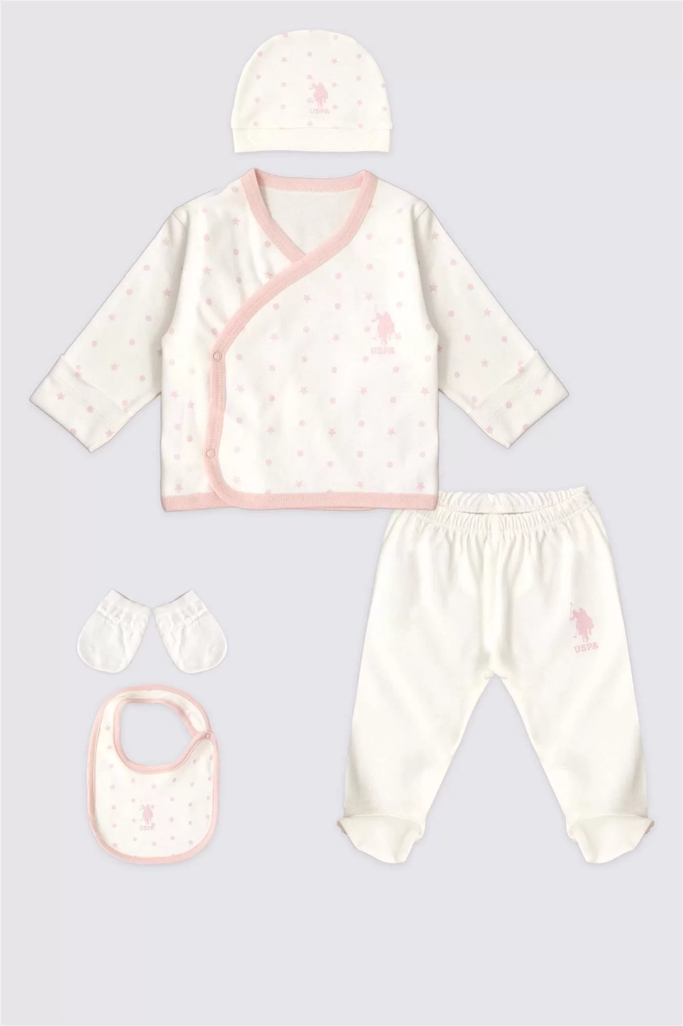 Assn Lisanslı Pudra Kız Bebek 5’li Hastane Çıkış Seti, %100 pamuklu yapısı ve interlok kumaş türü ile bebekler için cilt dostudur.