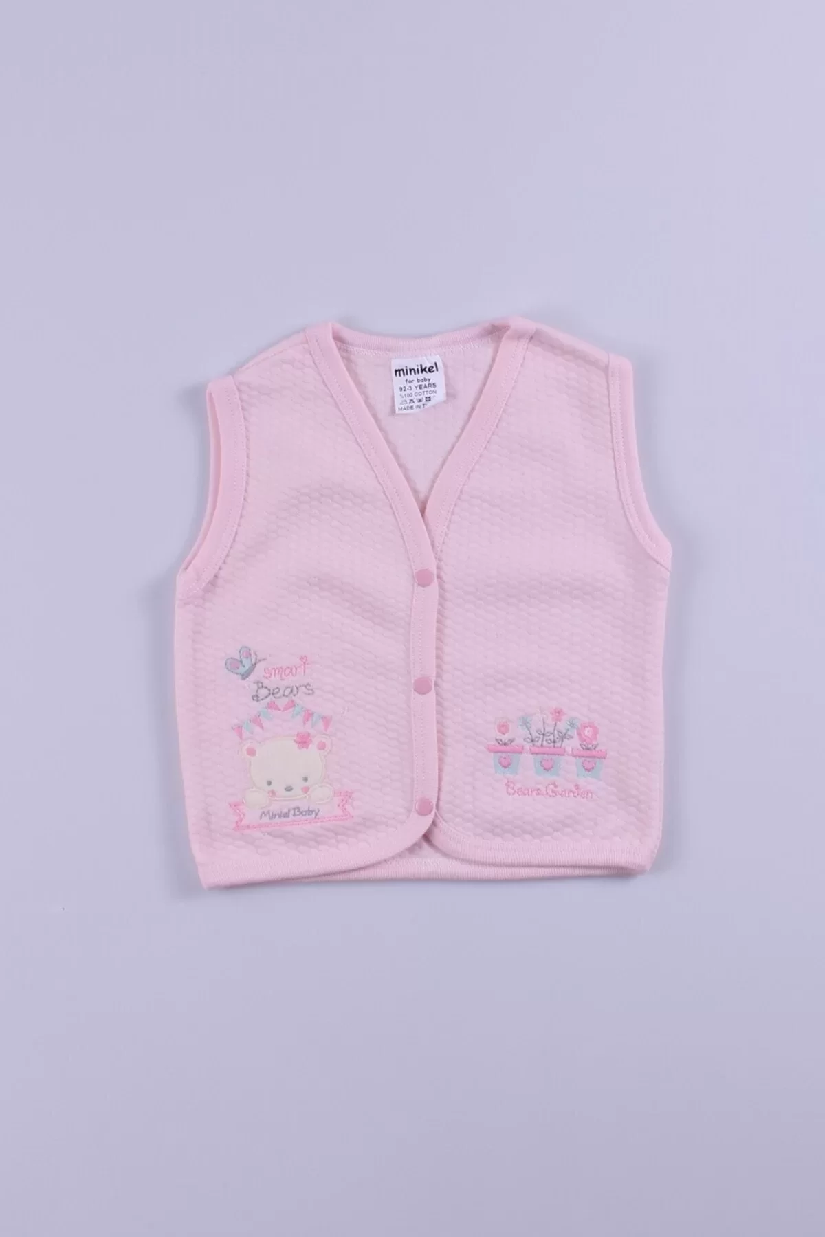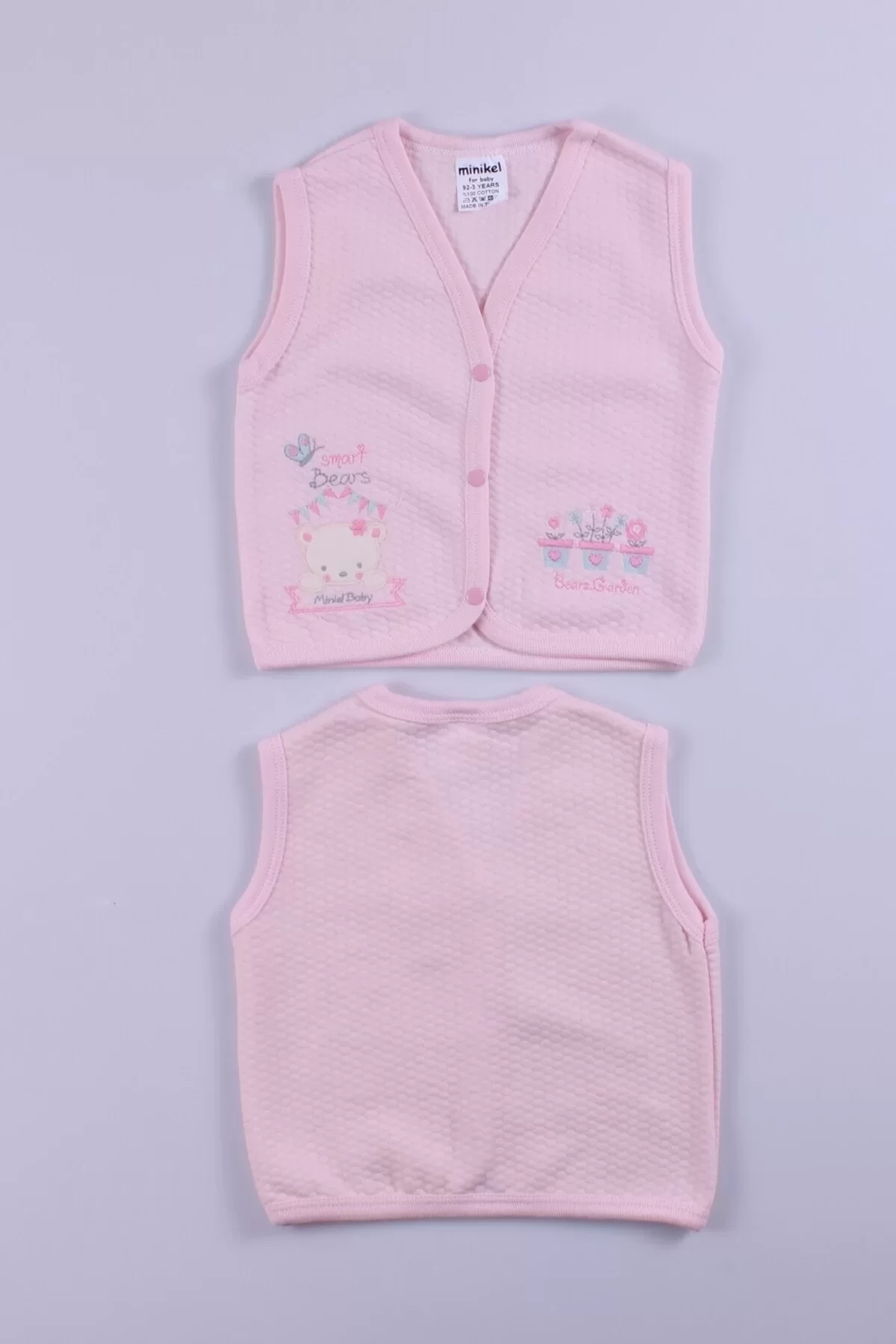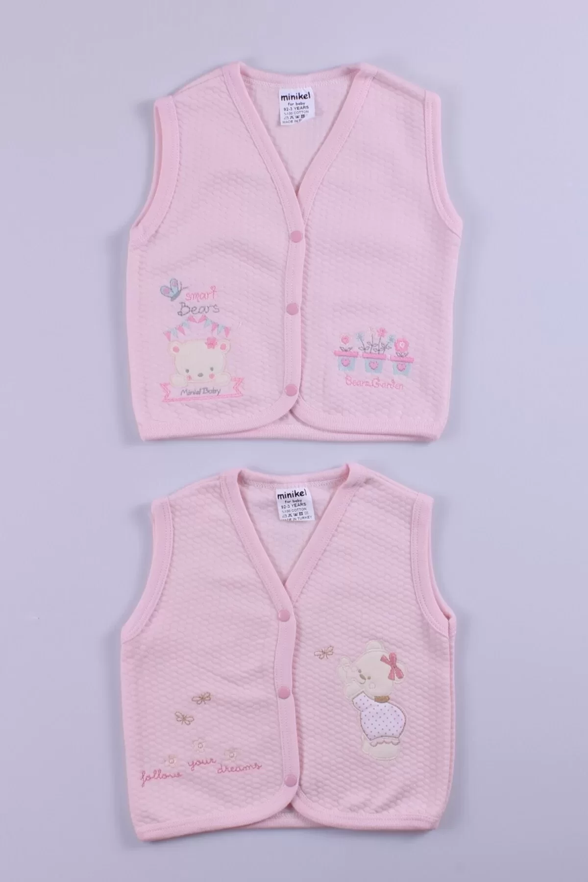 Kız Bebek Pembe Nakışlı Kapitone 2’li Yelek