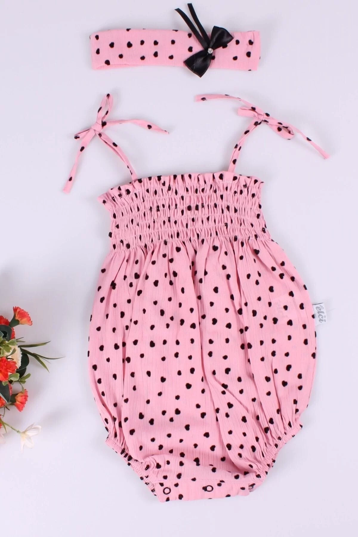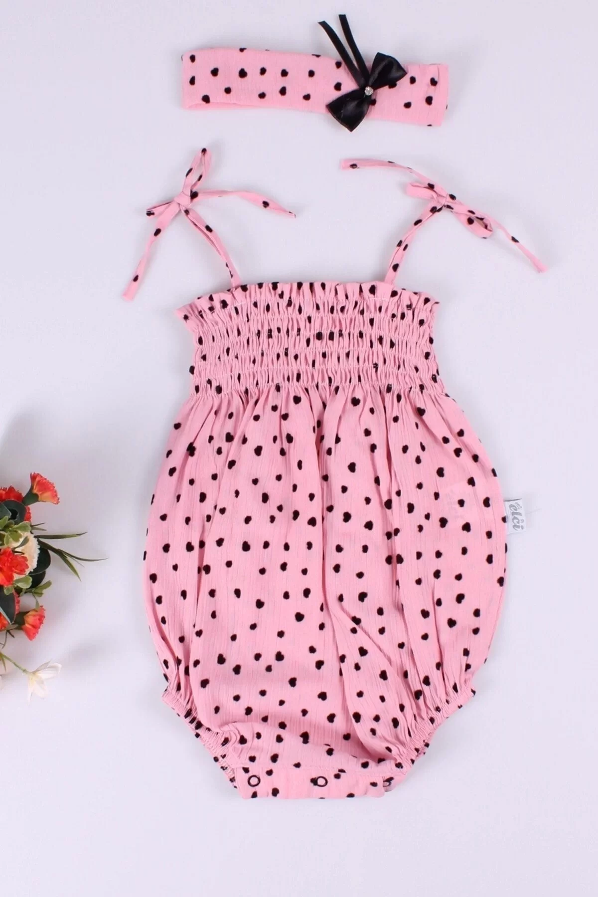 Kız Bebek Pembe Puantiyeli Askılı Body