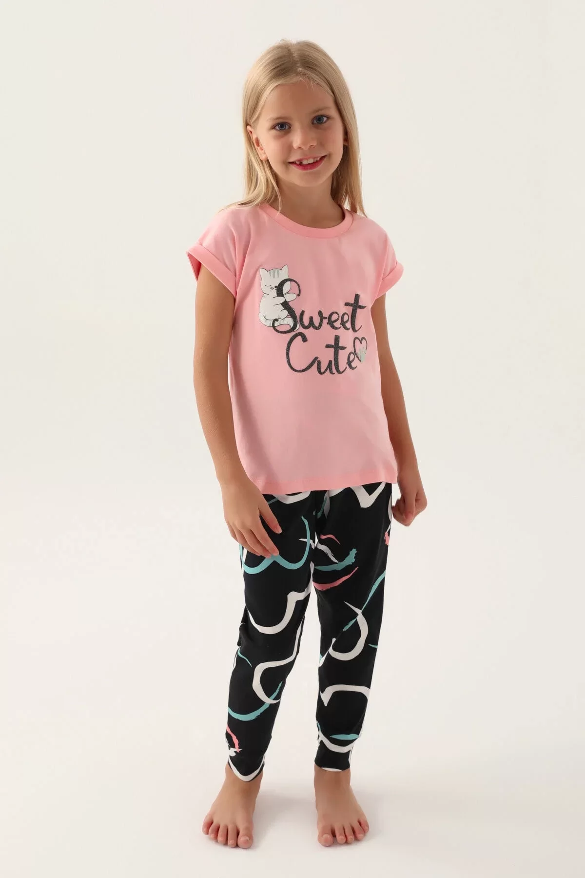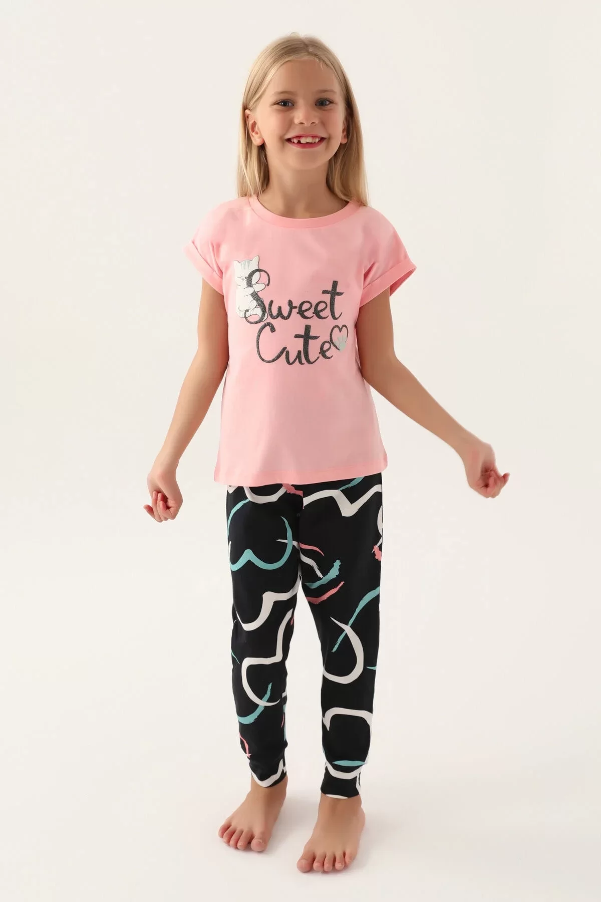 Rolypoly Sweet Kız Çocuk Pijama Takımı Yaz Aylarının Enerjisini Yansıtan Tasarımıyla Her Anında Çocuğunuzun Neşesini Artırıyor.