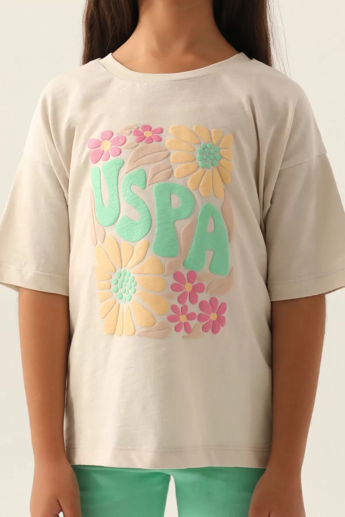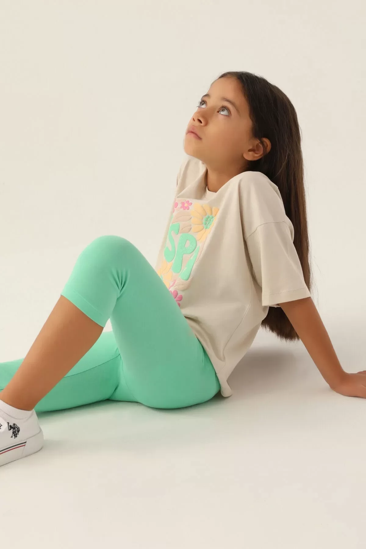 Kız Çocuk Flower 2’li Kapri Takım Bej