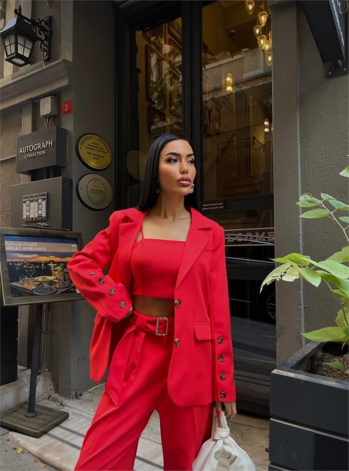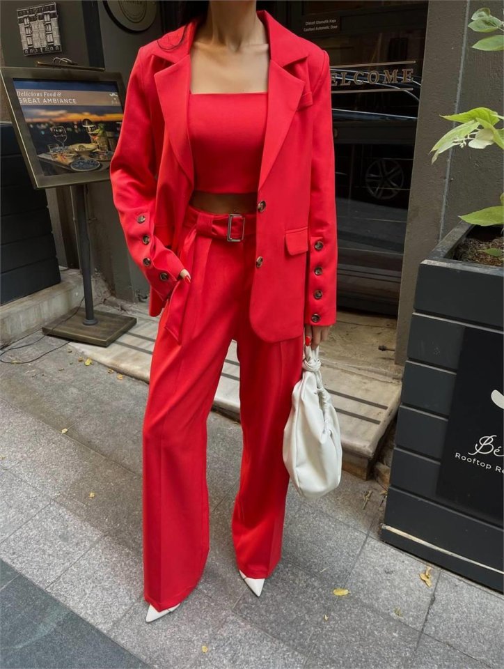 KOL 4 DÜĞME – BÜSTİYERLİ 3 CEKET PANTOLON TAKIM – Nar