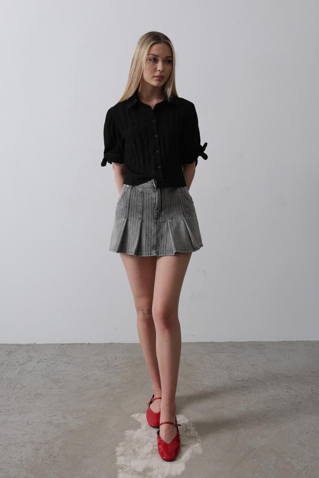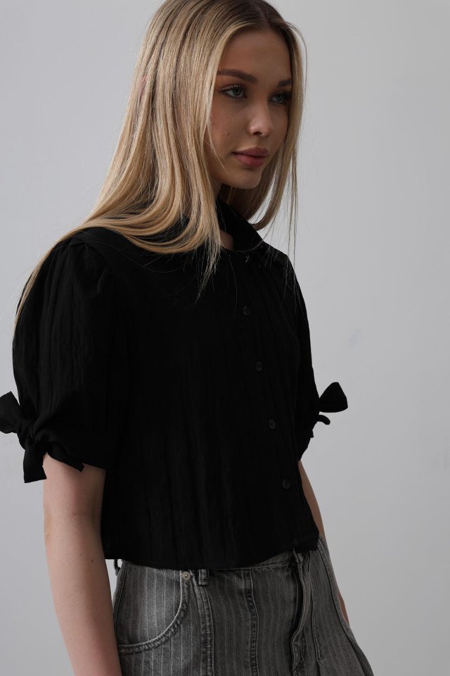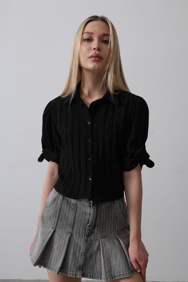 Kolları Bağlamalı Crop Gömlek – Siyah