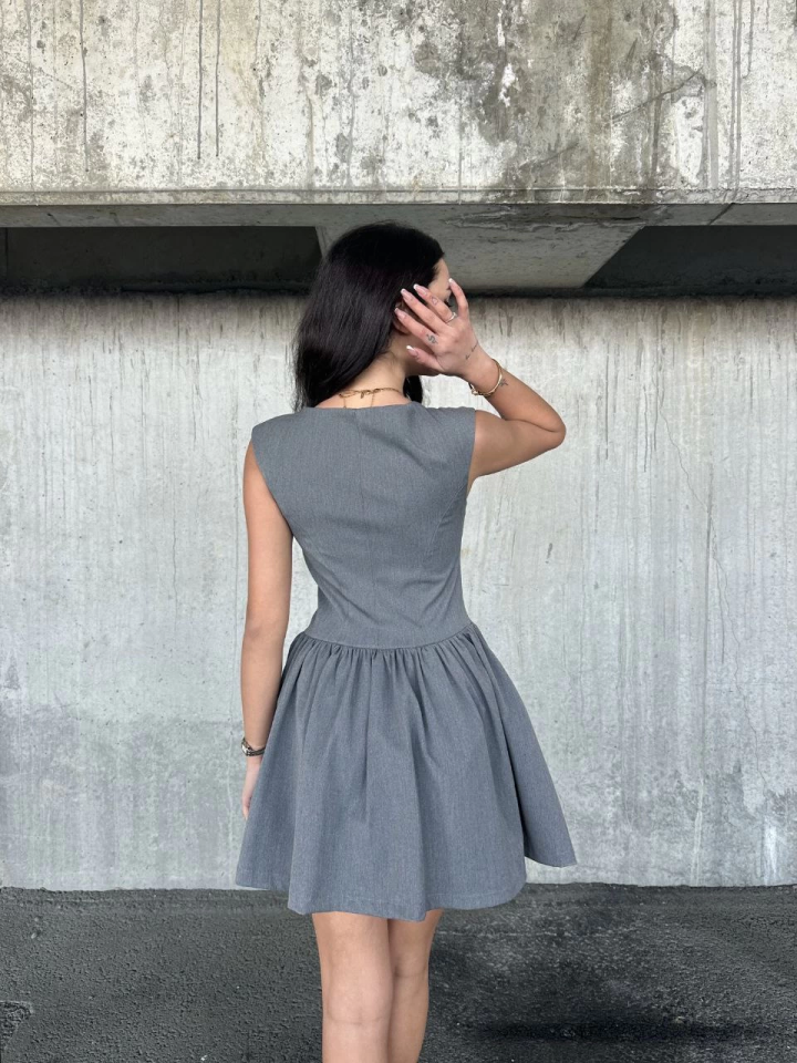 Kolsuz Mini Elbise- Gri