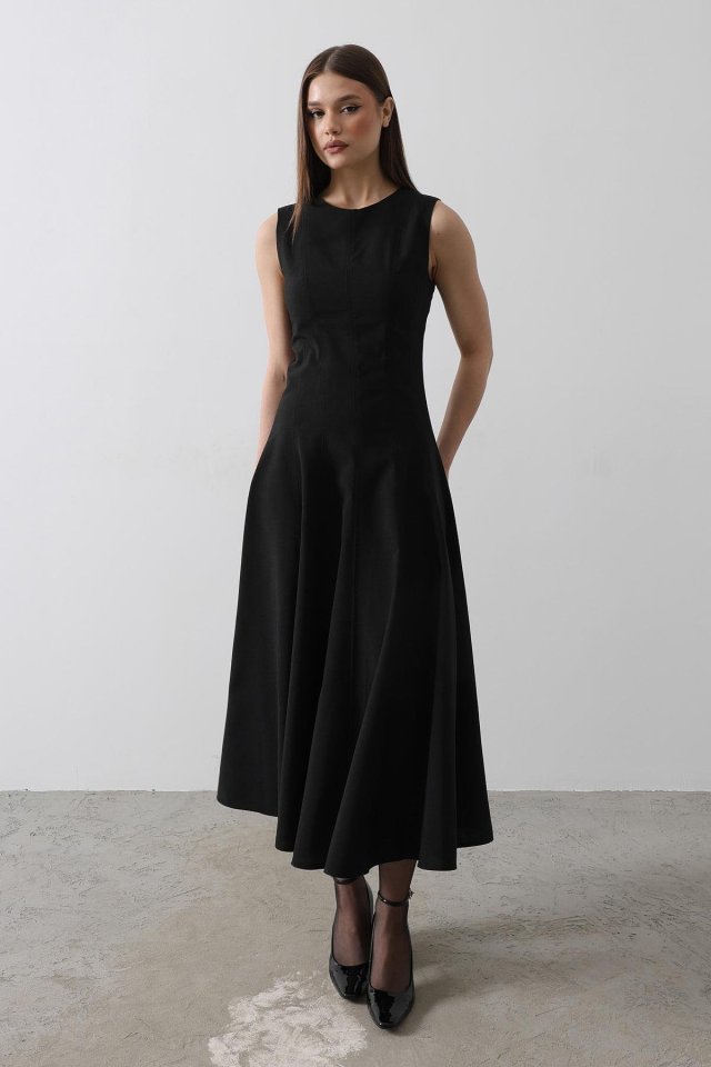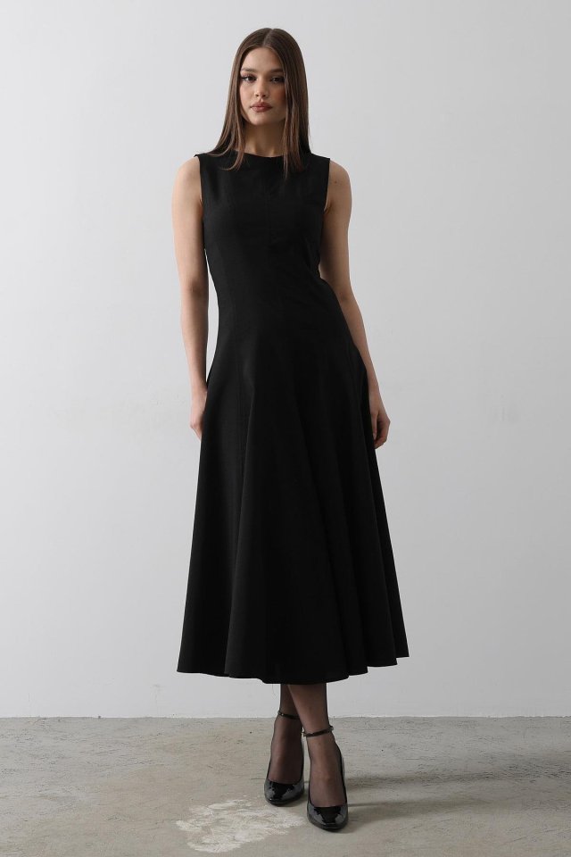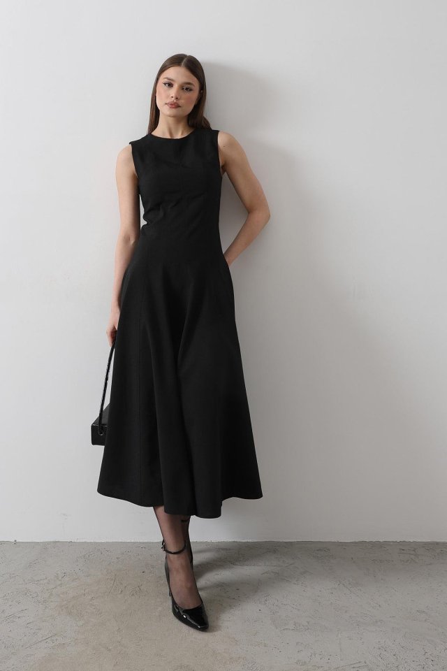 Kolsuz Uzun Elbise – Siyah