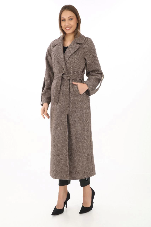 Kolu Apoletli Astarlı Kaşmir Kaşe Kaban – Vizon