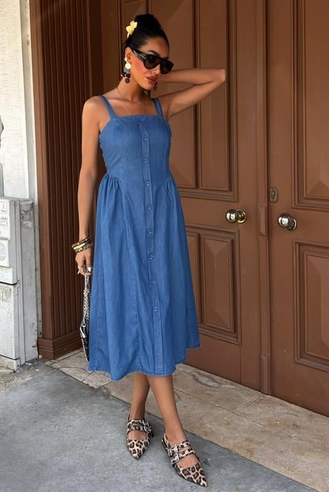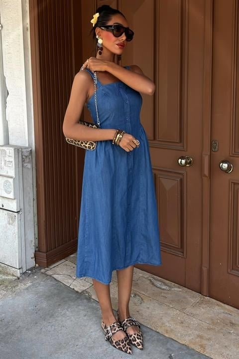 Korsaj Detaylı Midi Tensel Elbise 2884