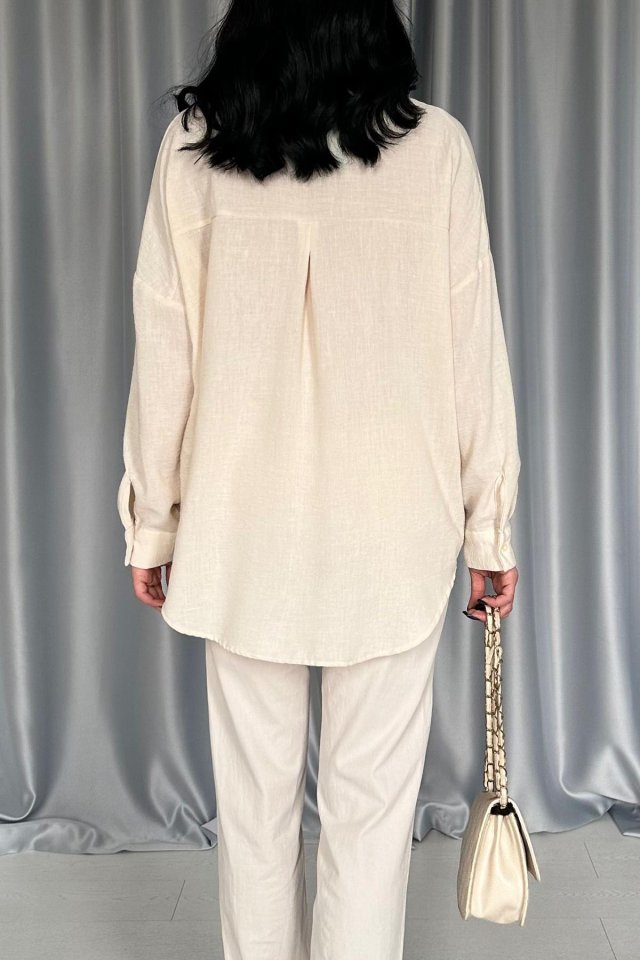 Krem Pulpayet Nakışlı Bedensiz Gömlek