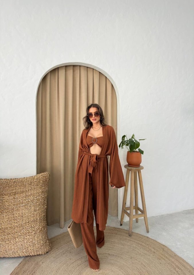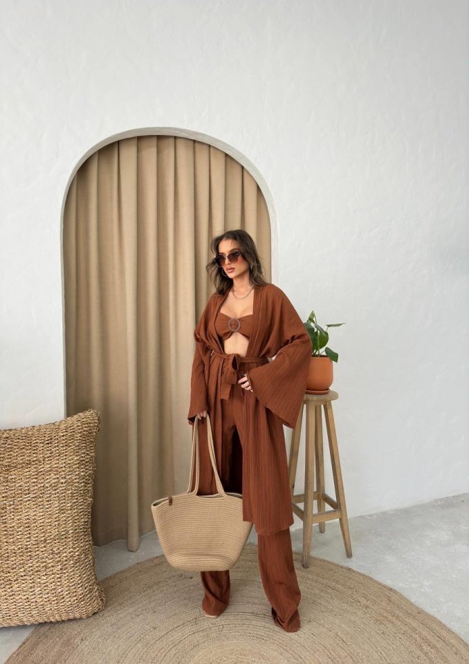 KRINKILL BÜSTİYER-PANTOLON-KİMONO TAKIM – Kahverengi