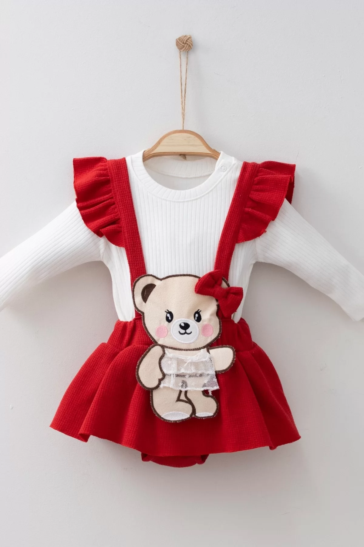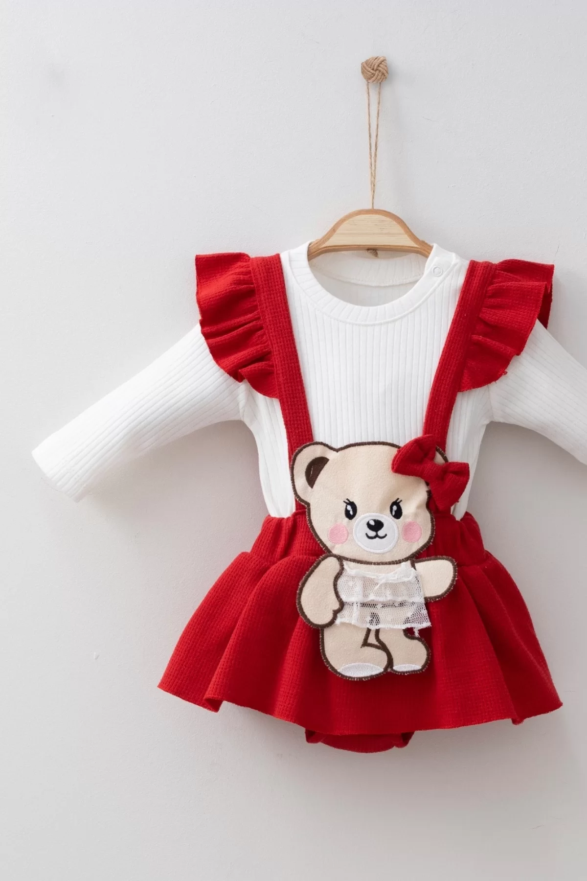 Kurdaleli Ayıcık Askılı 2’li Kız Bebek Takımı