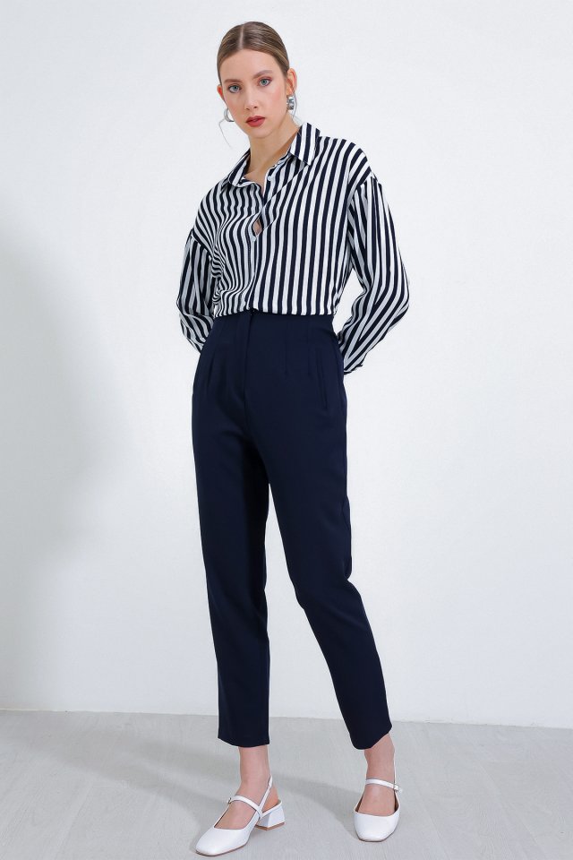 Lacivert Yüksek Bel Kumaş Pantolon 6650