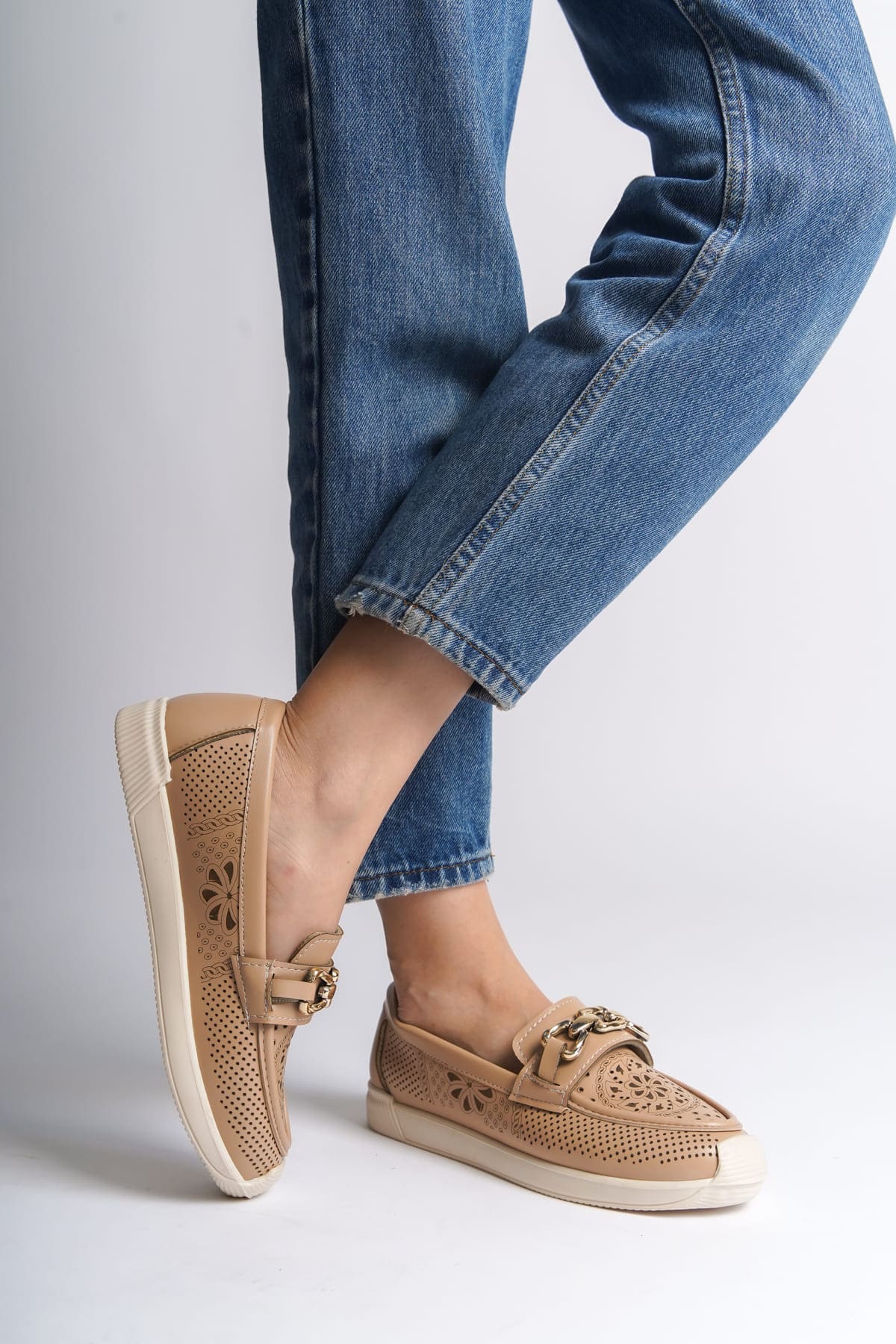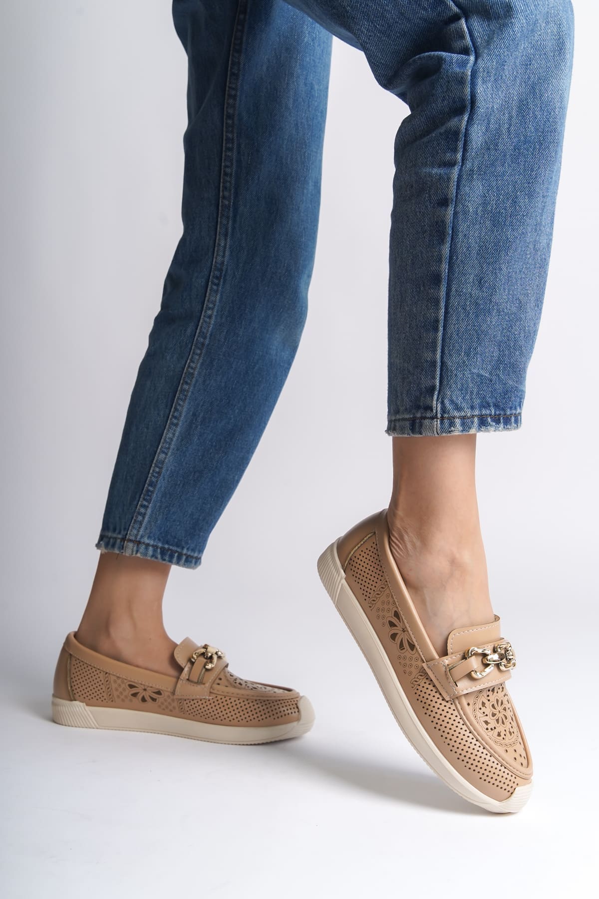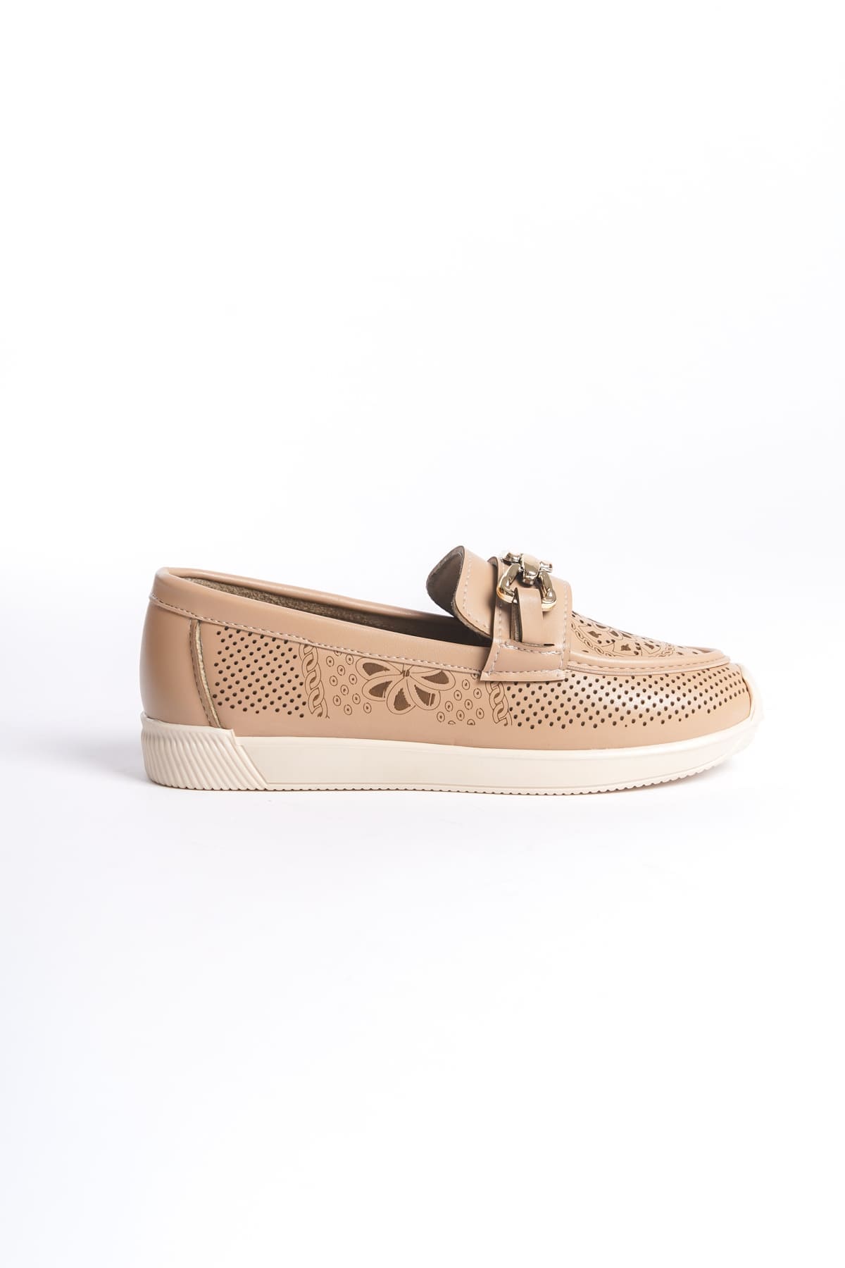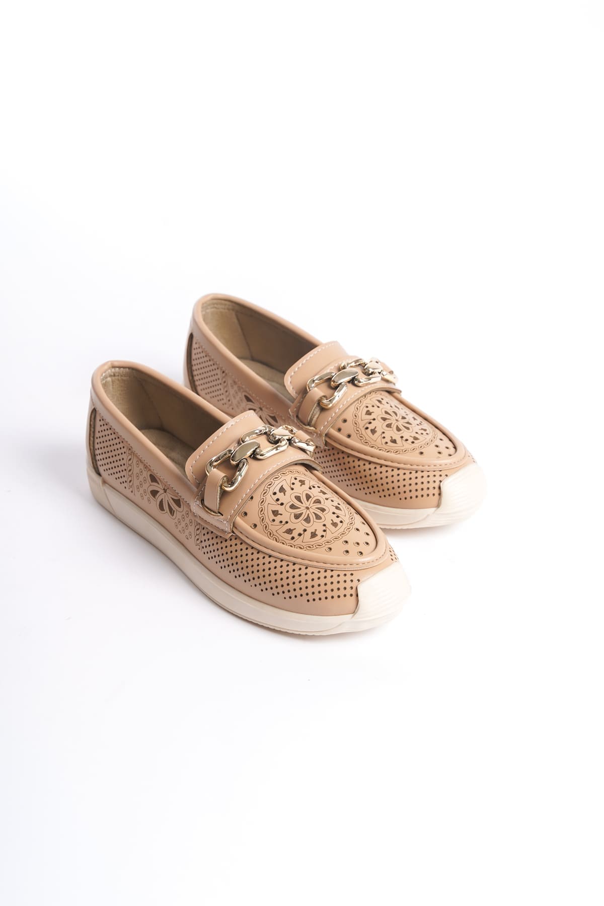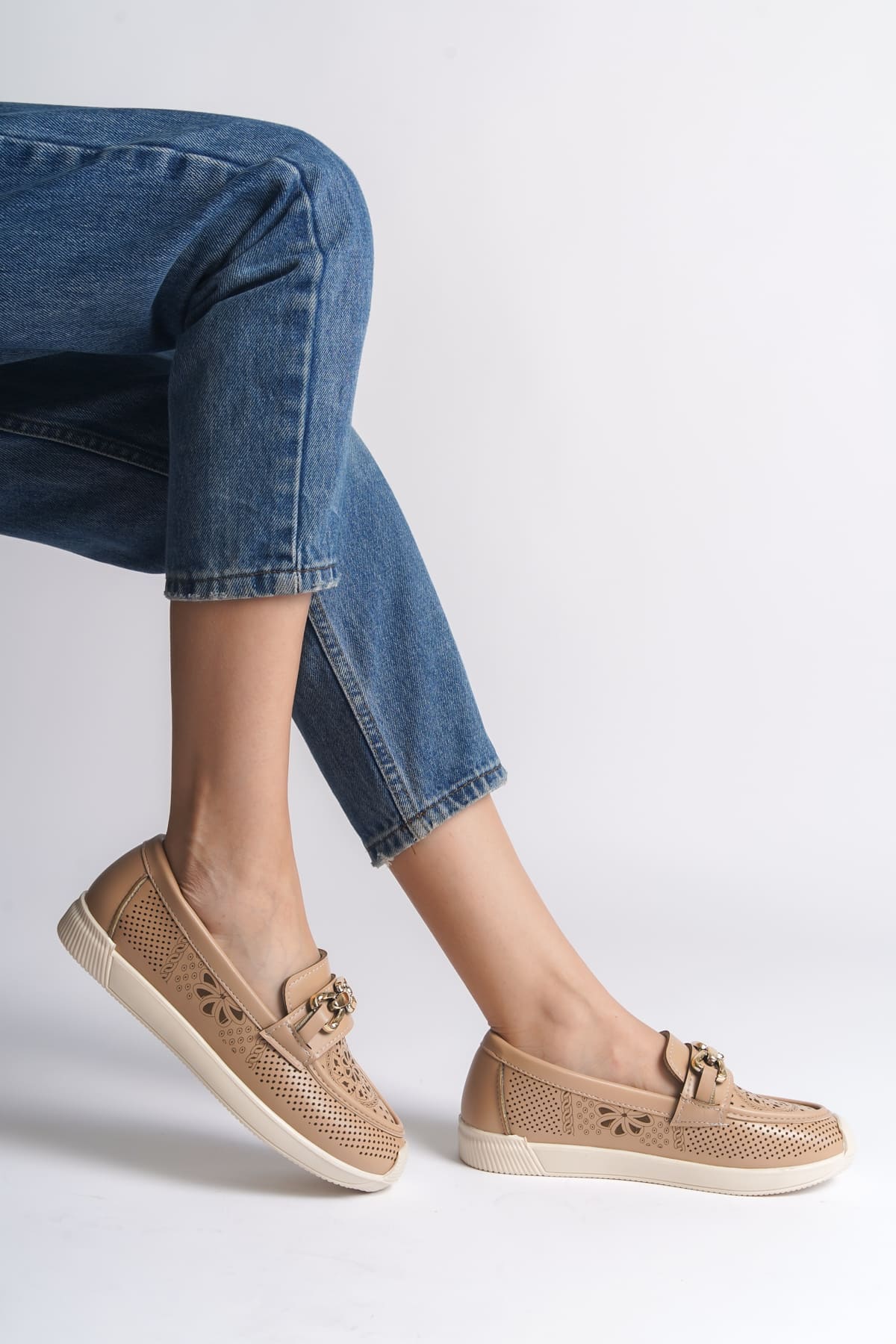 LAYLA Bağcıksız Ortopedik Rahat Taban Çiçek Desenli Kadın Babet Ayakkabı CKT – Ten