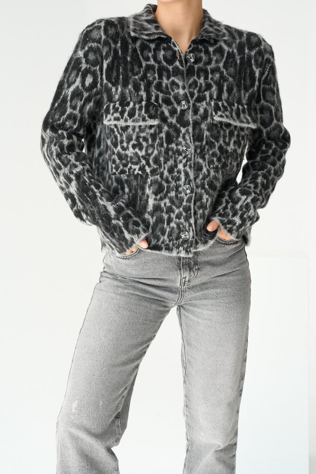 Leopar Desen Jakarlı Hırka – Siyah-Açık Gri
