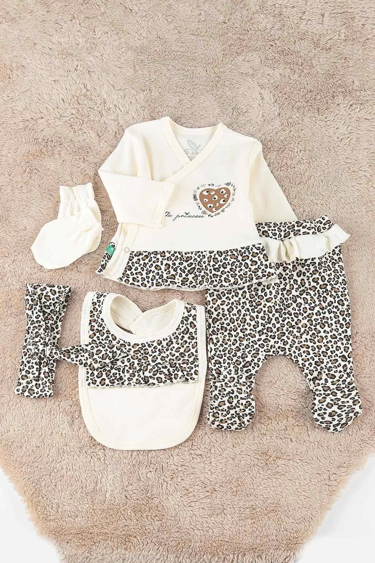 Leopar Desenli 6li Hastane Çıkışı Seti %100 Pamuk