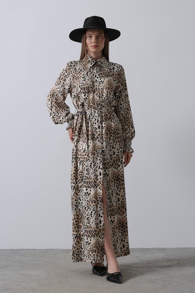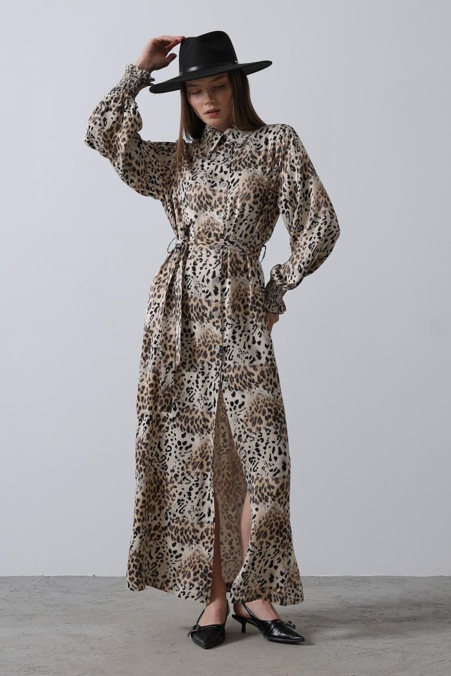 Leopar Desenli Gipeli Elbise – Leopar