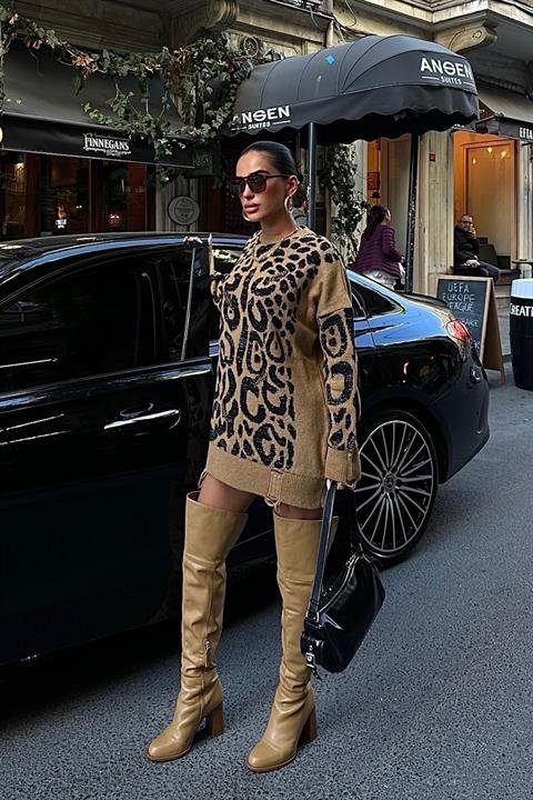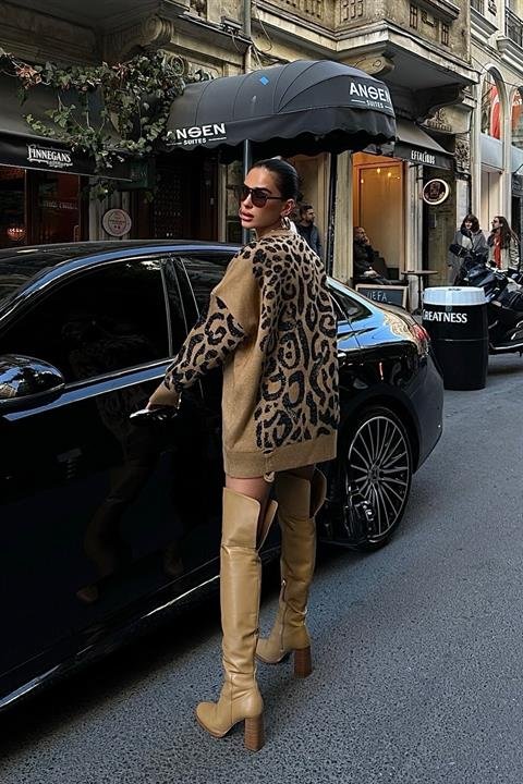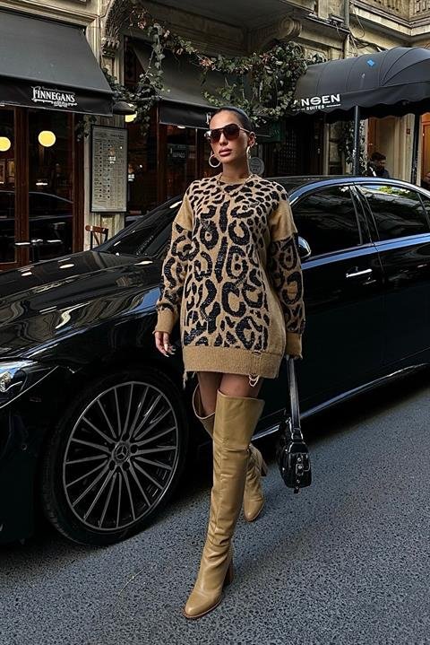 Leopar Desenli Yırtık Detaylı Kazak 1344
