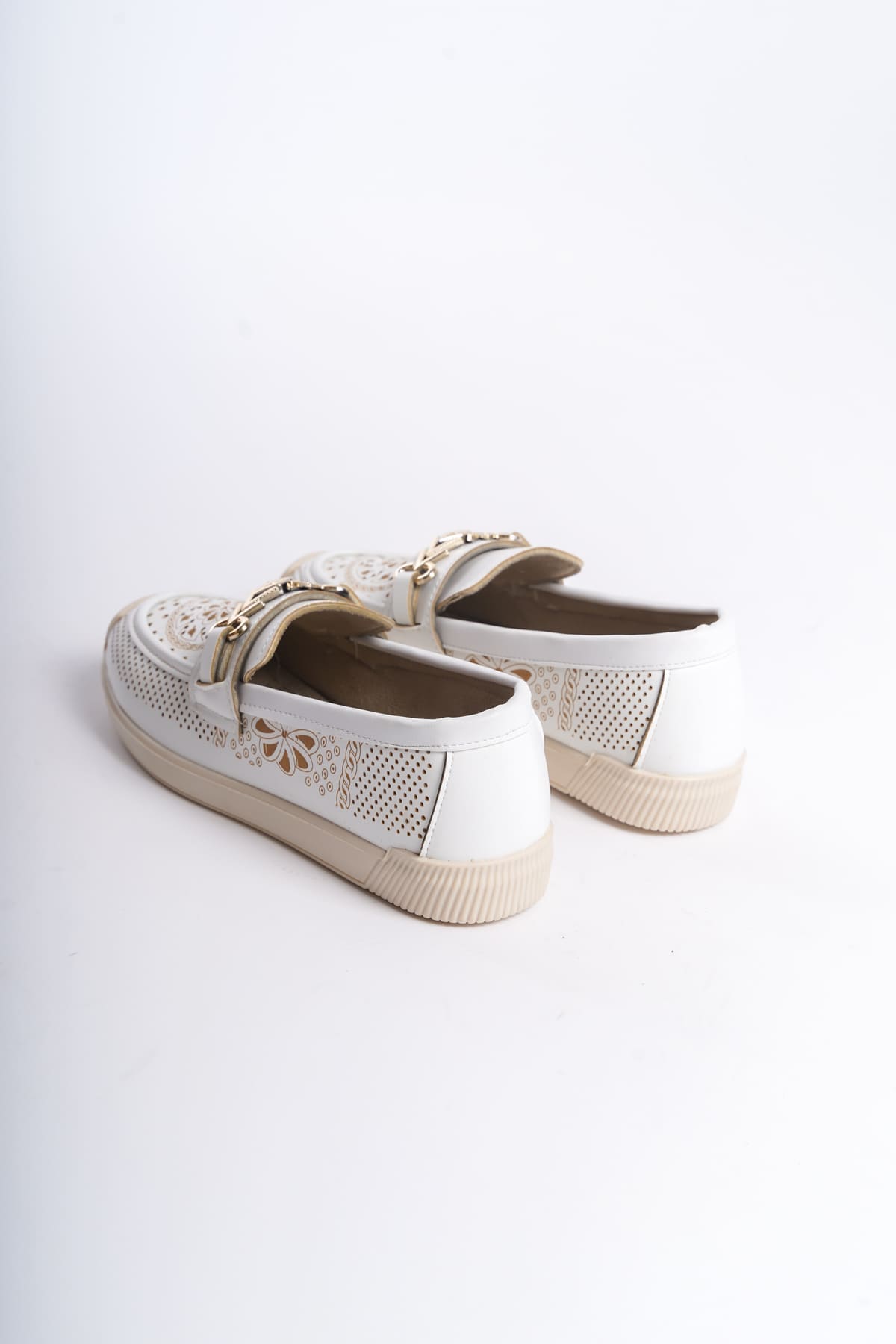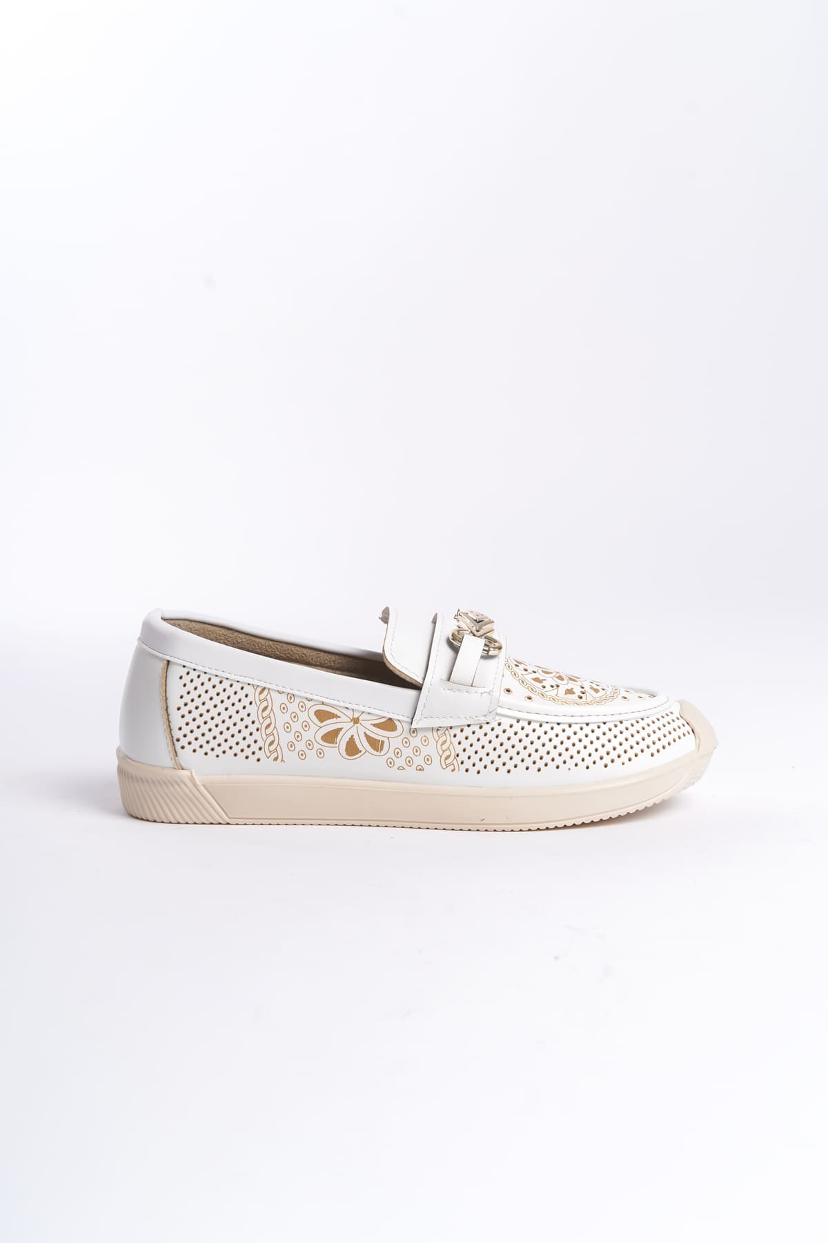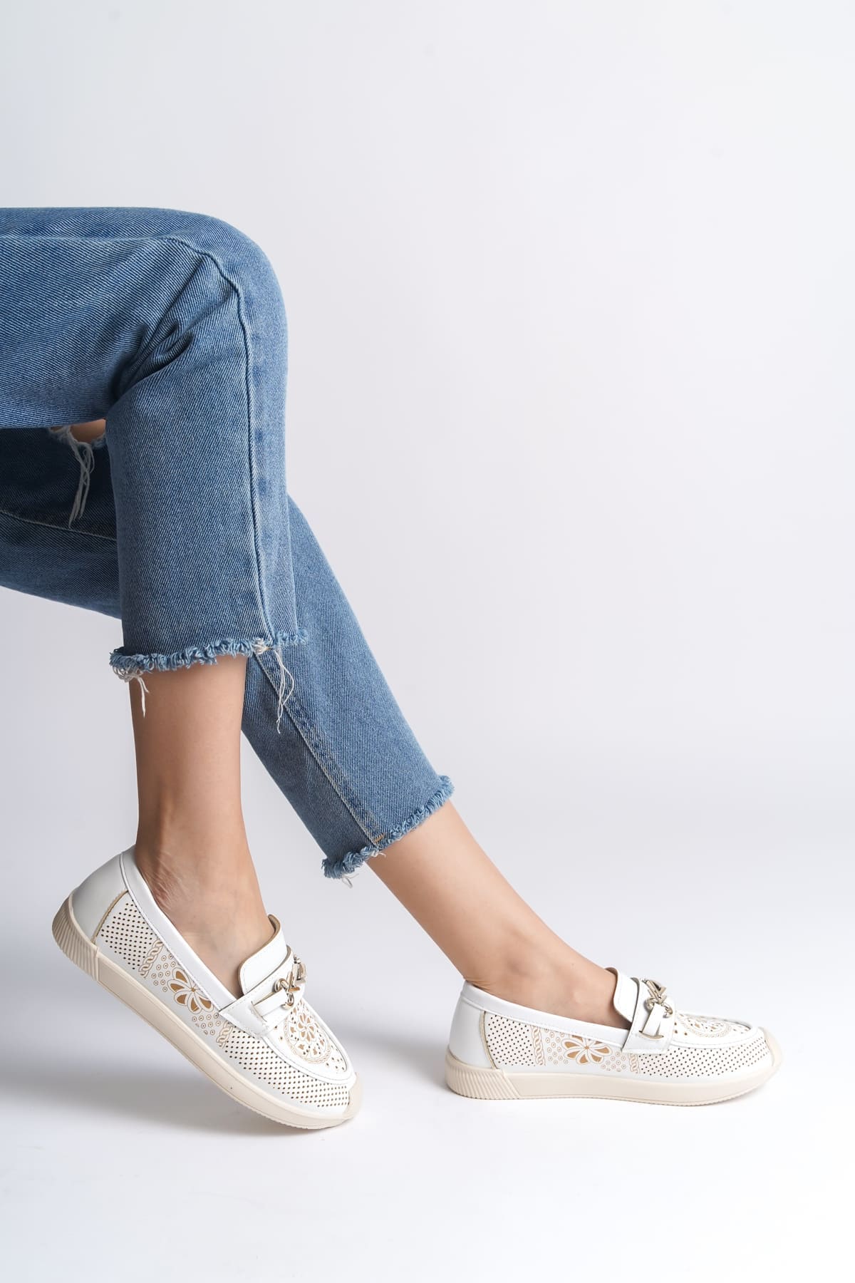 LILY Bağcıksız Ortopedik Rahat Taban Çiçek Desenli Kadın Babet Ayakkabı CKT – Beyaz