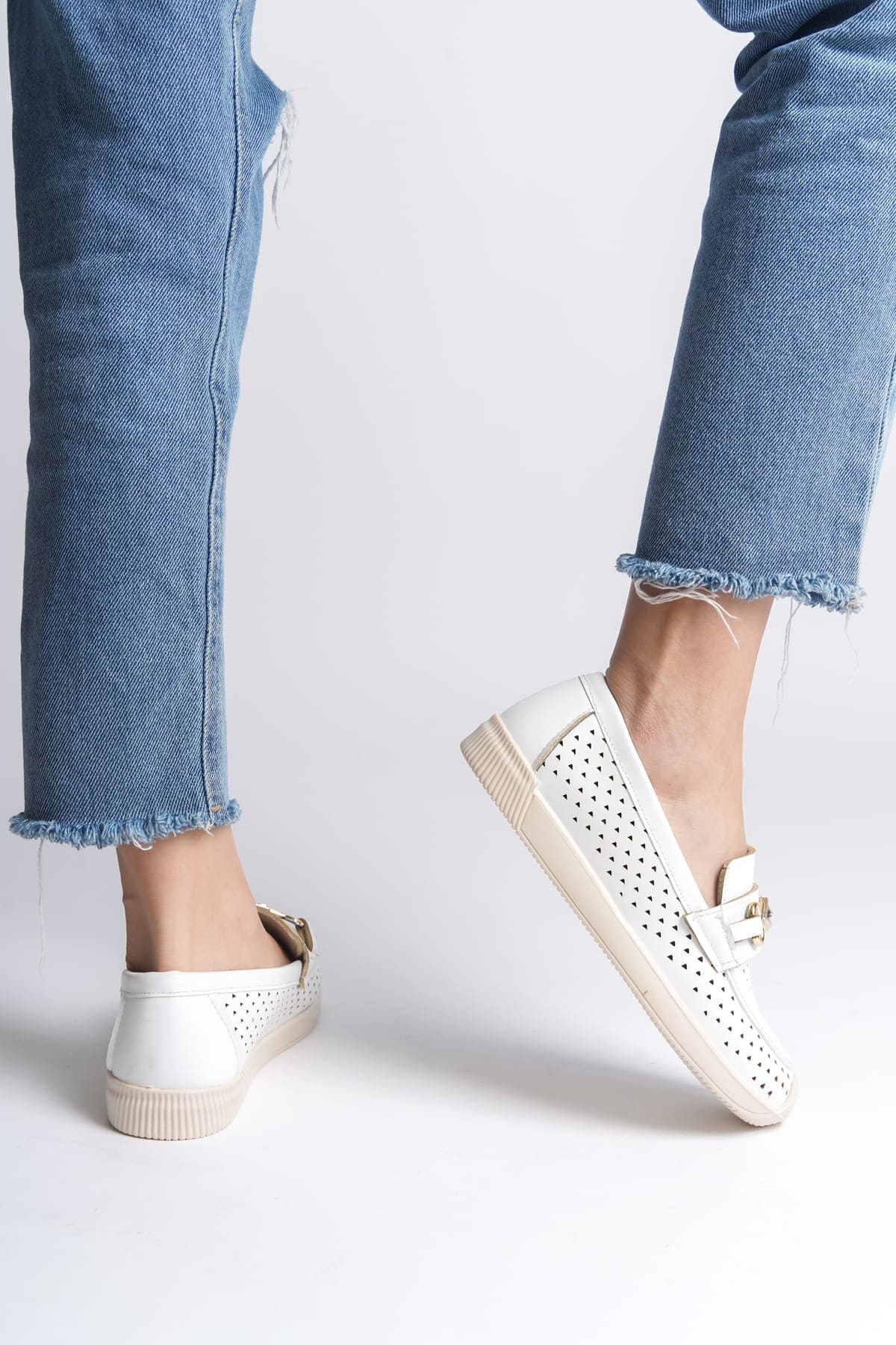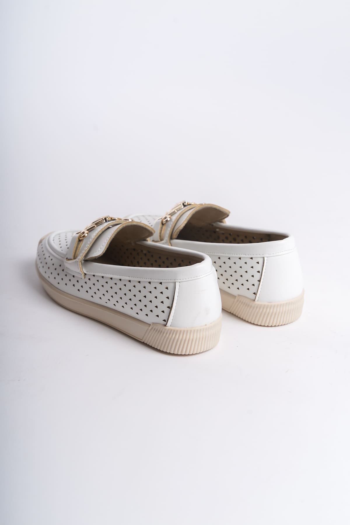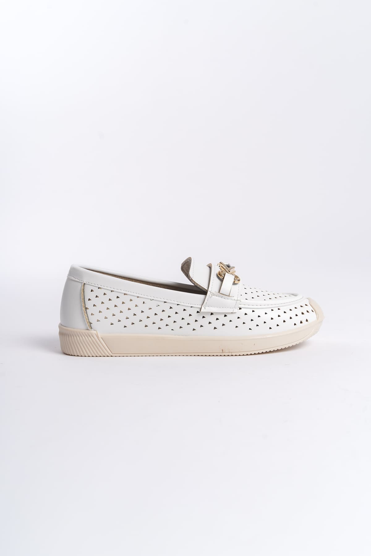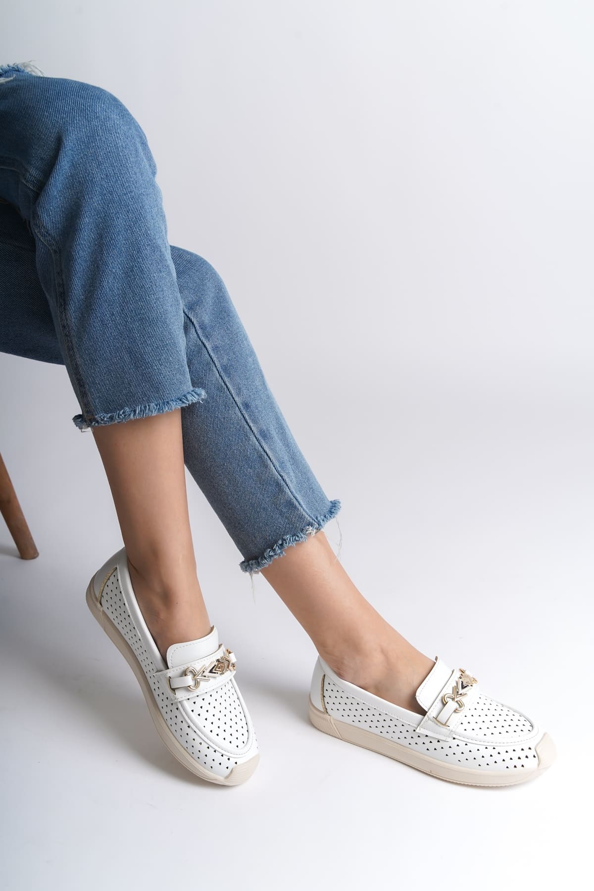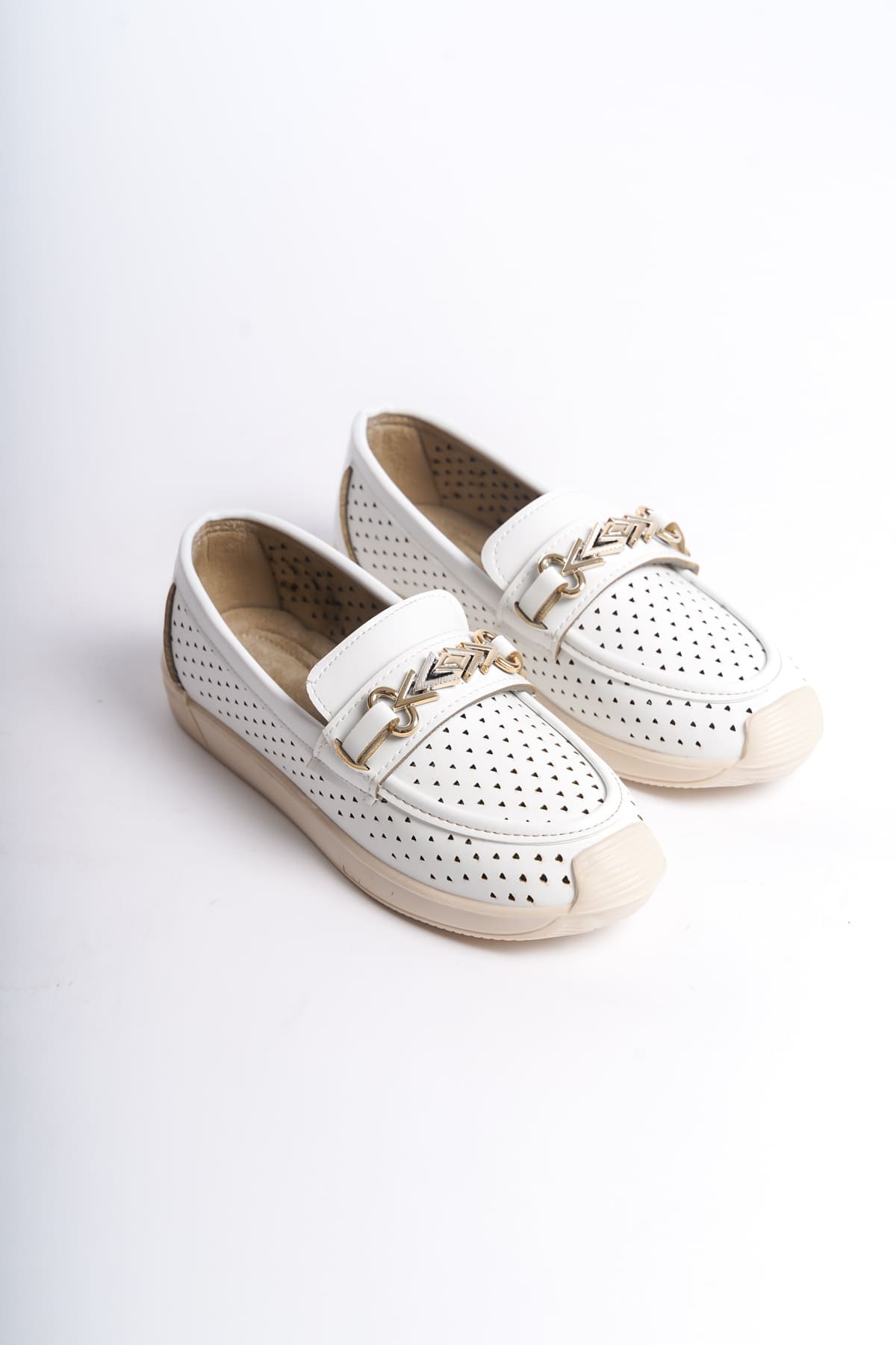 LILY Bağcıksız Ortopedik Rahat Taban Kalp Desenli Kadın Babet Ayakkabı CKT – Beyaz