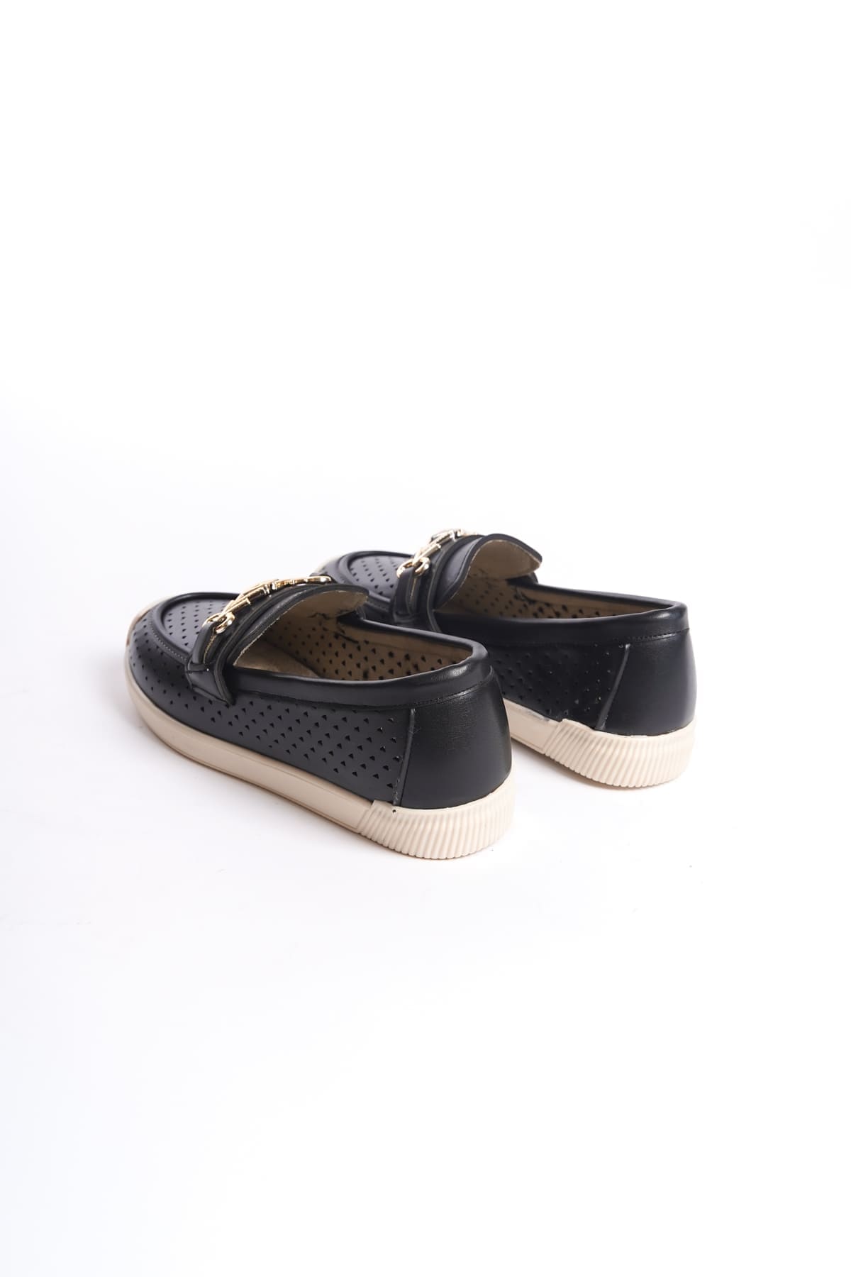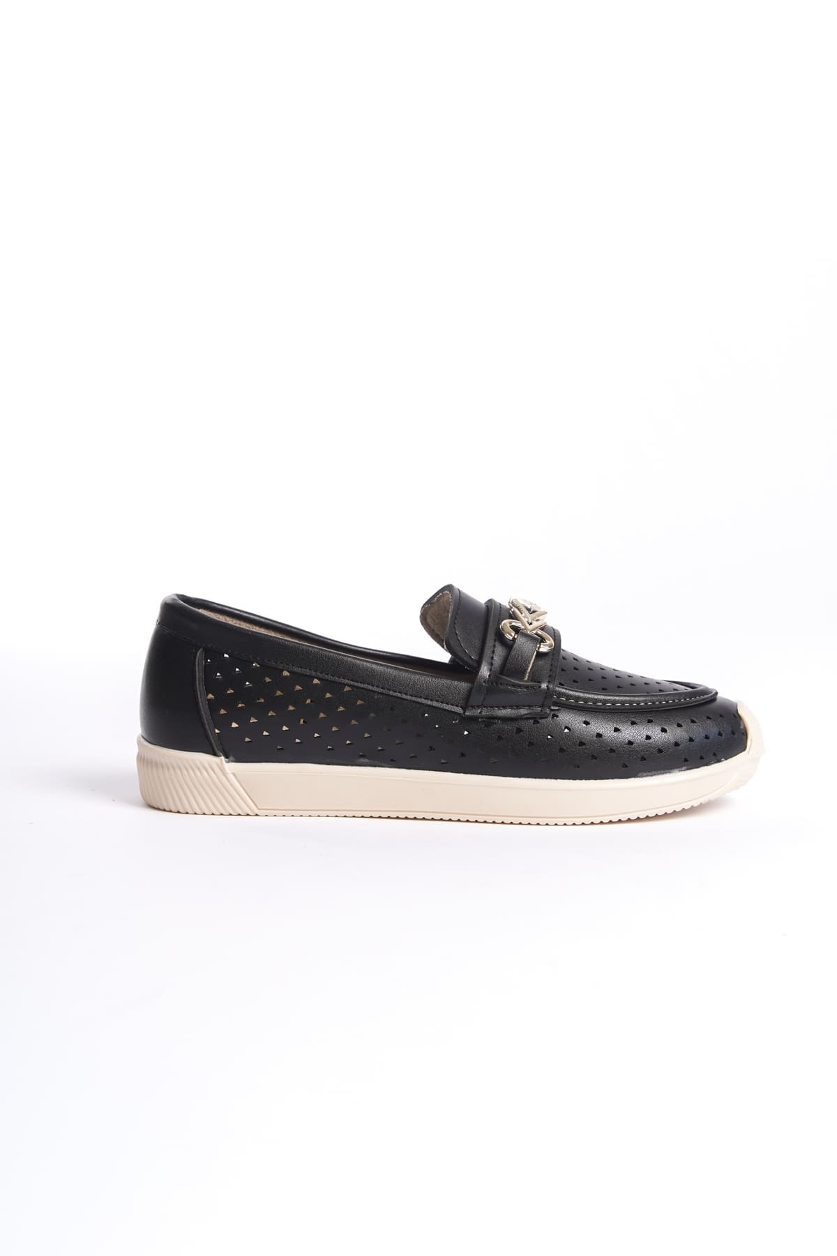 LILY Bağcıksız Ortopedik Rahat Taban Kalp Desenli Kadın Babet Ayakkabı CKT – Siyah
