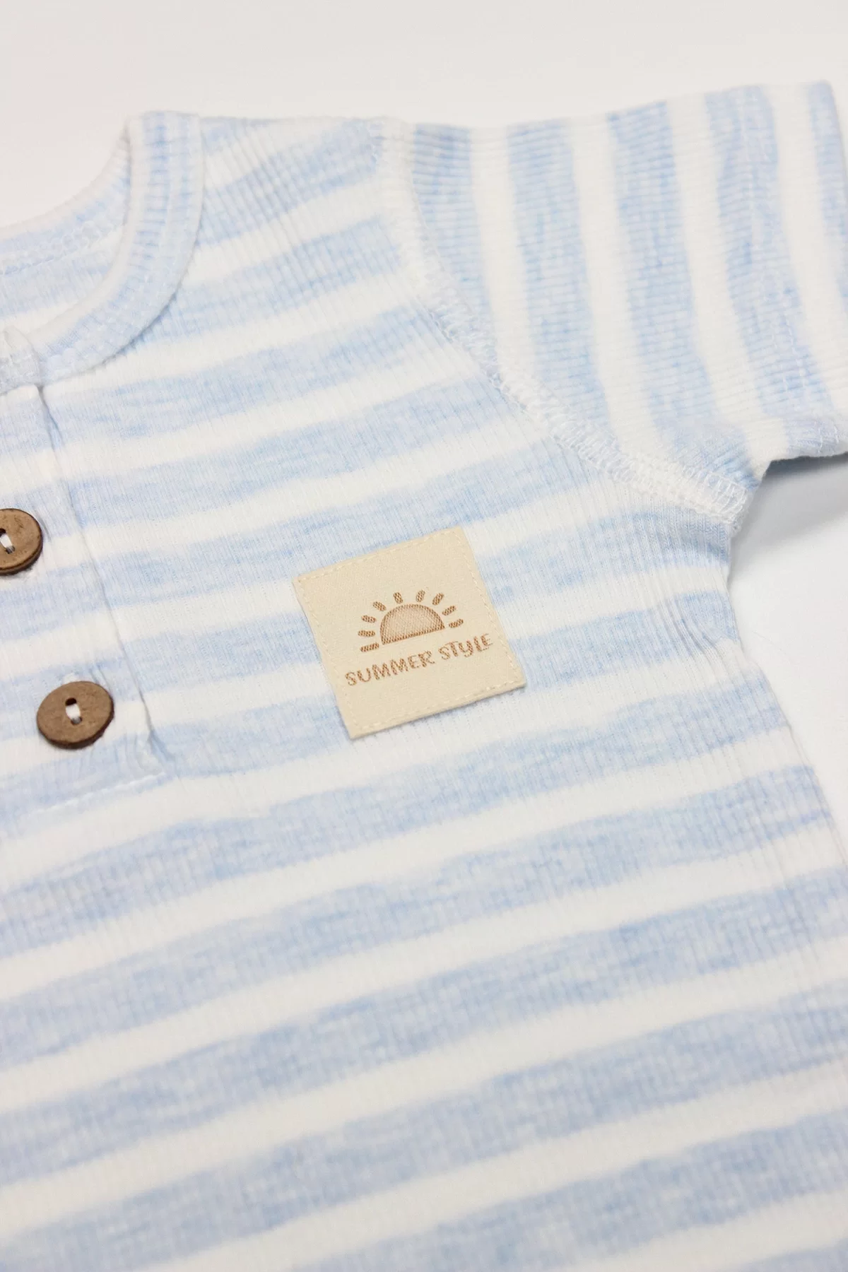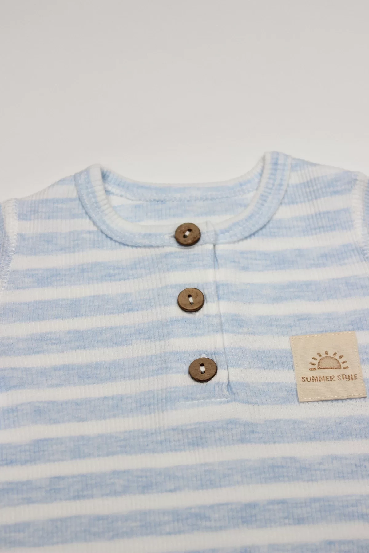 / Line Colors Yarım Kol Patiksiz Tulum 15126 Mavi
