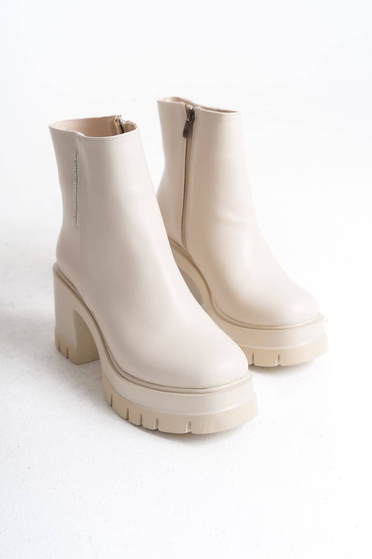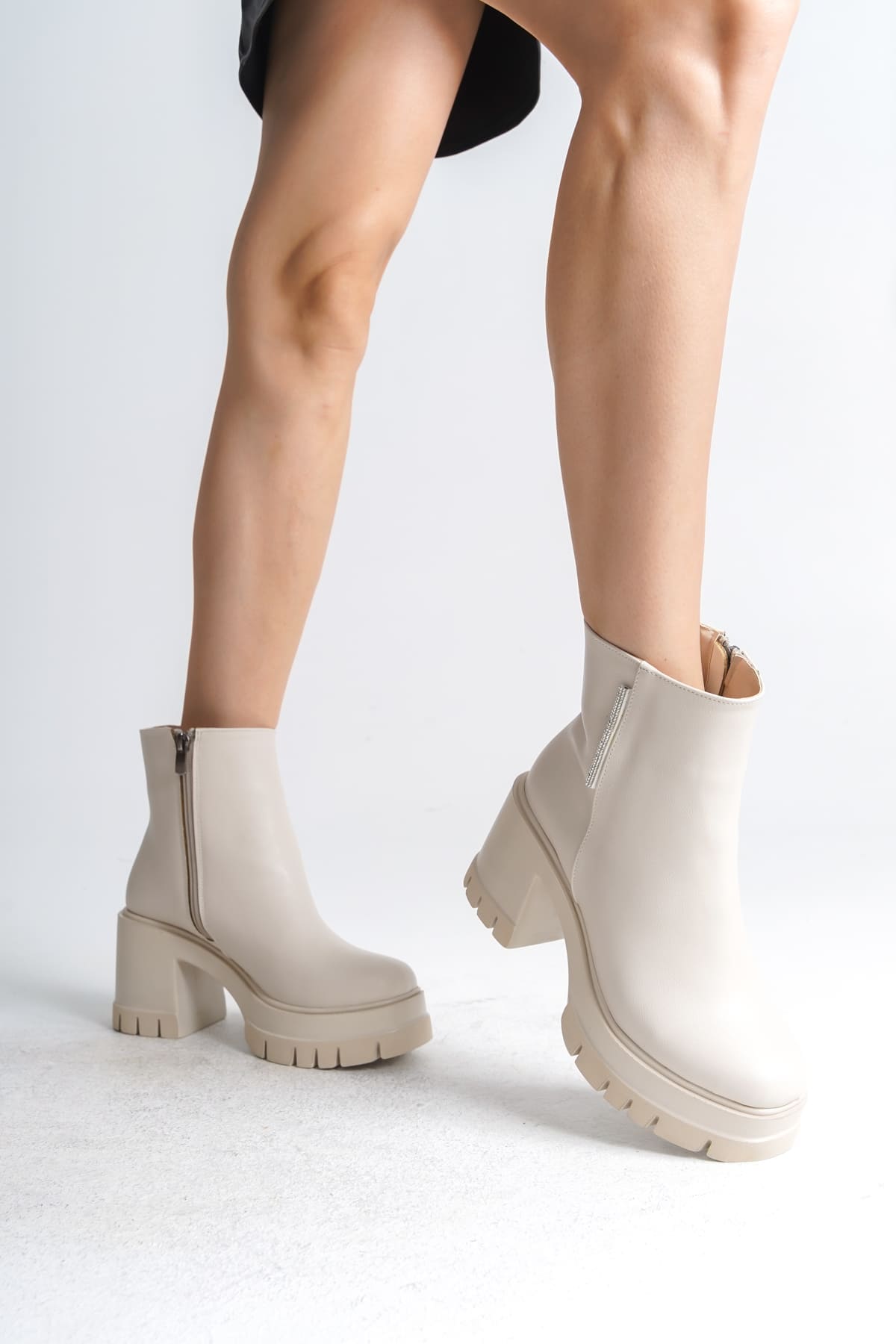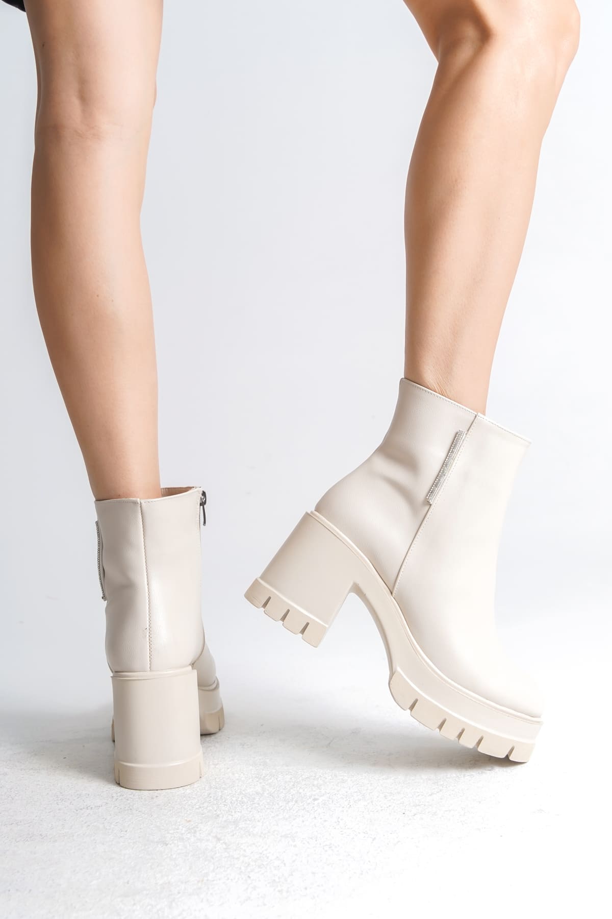 LISSE Fermuarlı Ortopedik Taban Kalın Topuklu Kadın Bot CKT – Krem