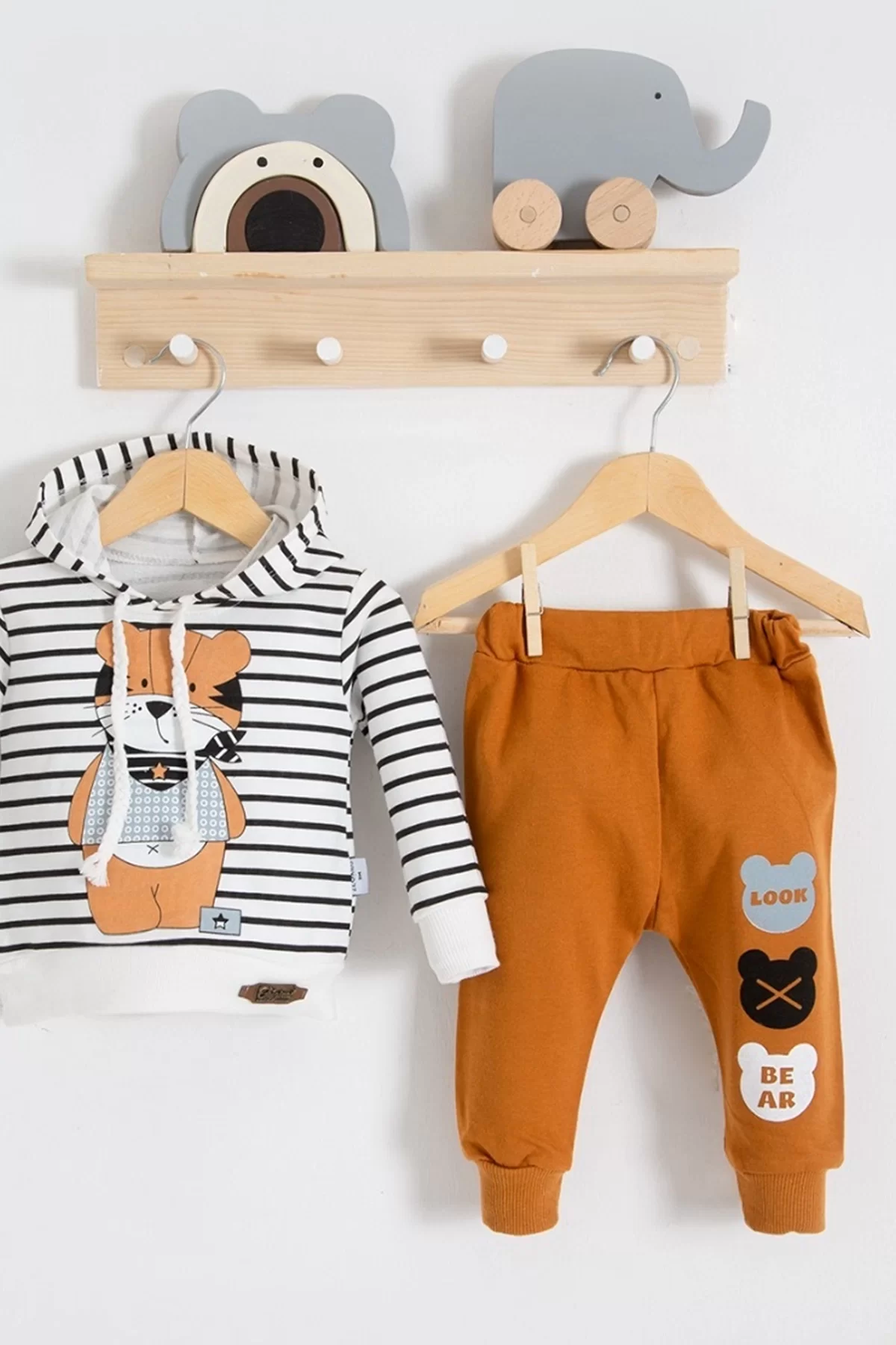 Look Bear 2’li Kapişonlu Erkek Bebek Takım