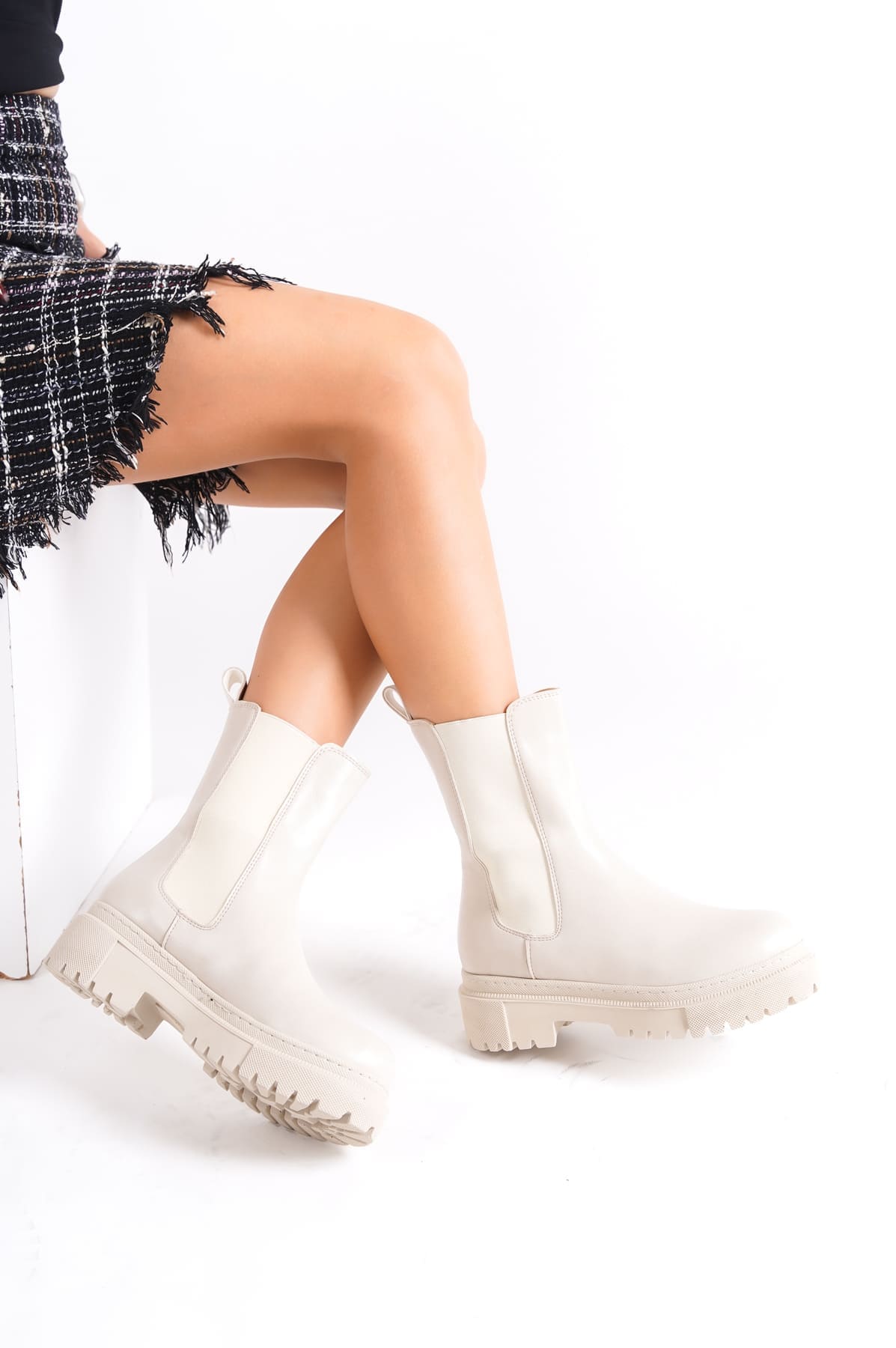 LORA Bağcıksız Lastikli Ortopedik Taban Kadın Bot CKT – Krem