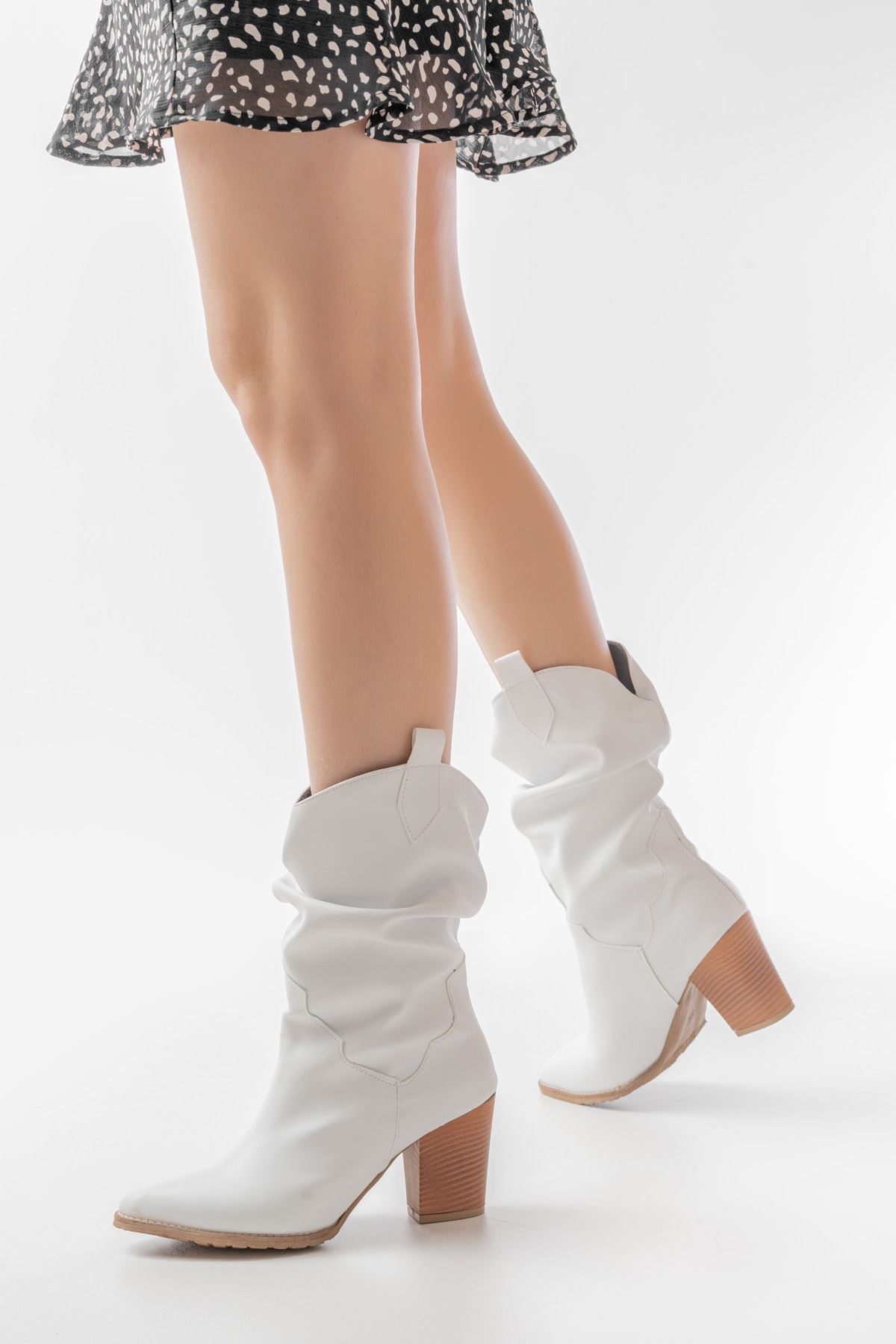 LS-1860 Beyaz Körüklü Kalın Topuklu Günlük Kadın Bot