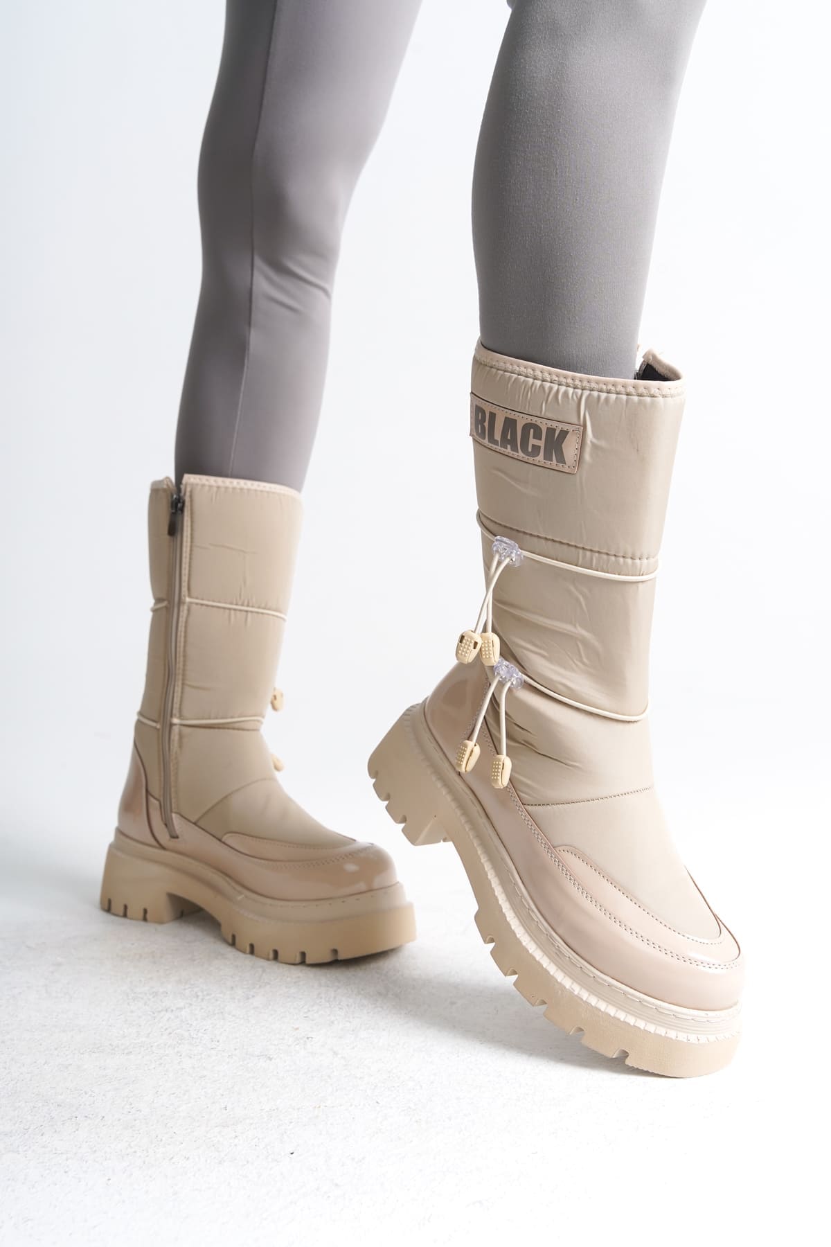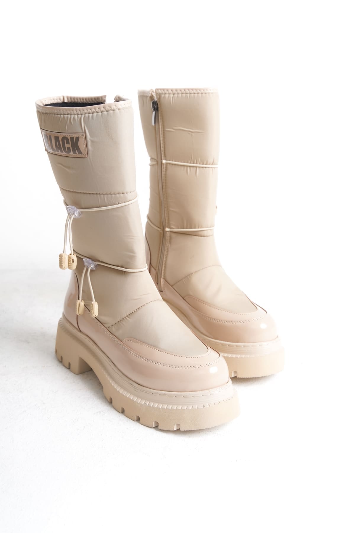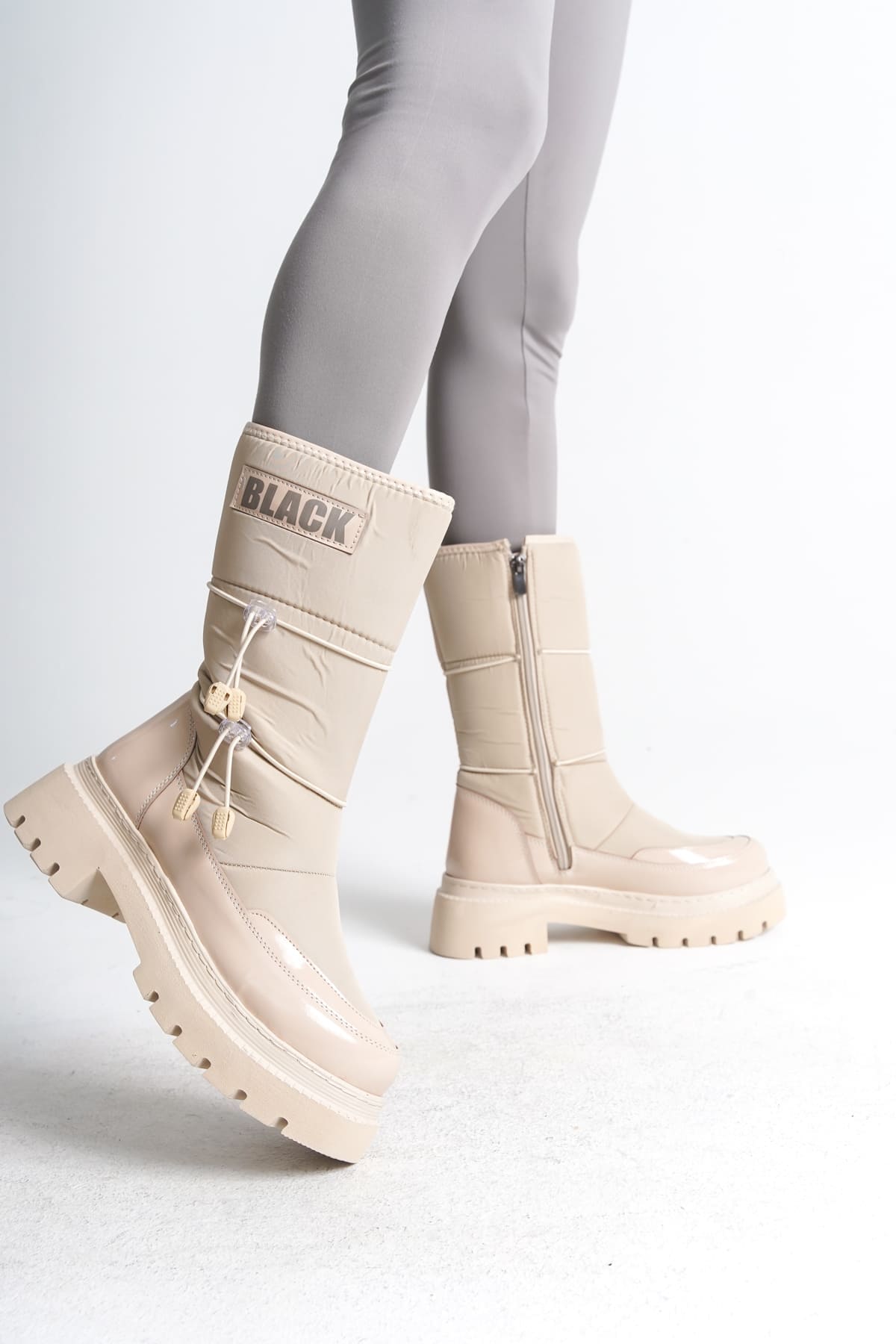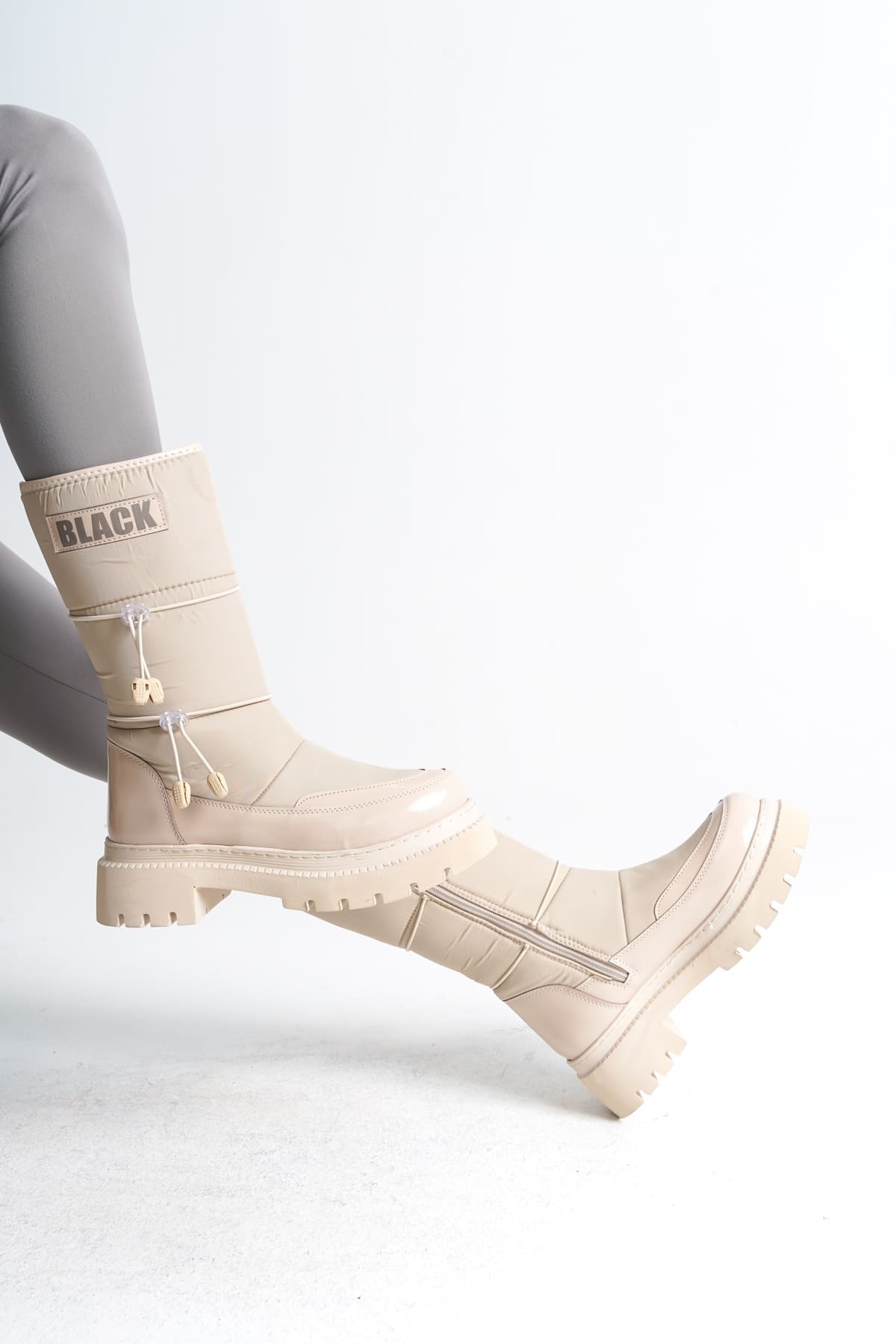 LUCY Lastikli Fermuarlı Paraşüt Kumaş Rugan Kadın Bot CKT – Krem