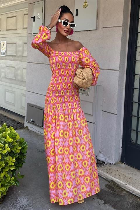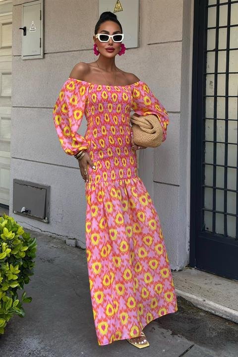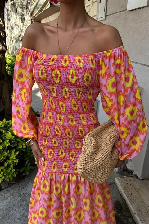Madonna Yaka Gipe Detaylı Desenli Elbise 2746