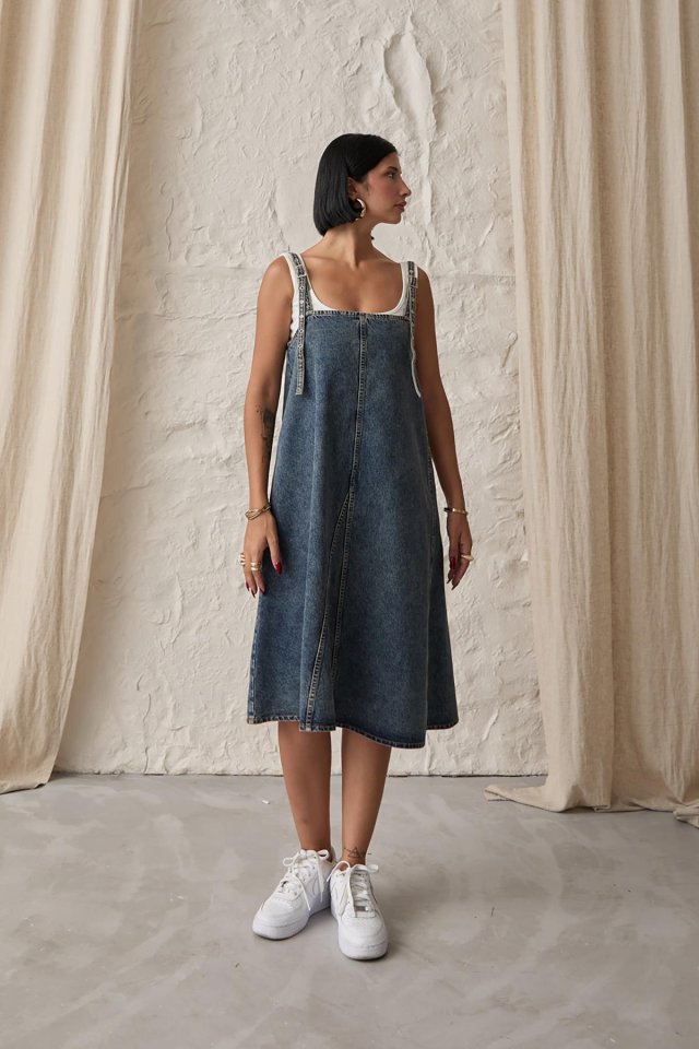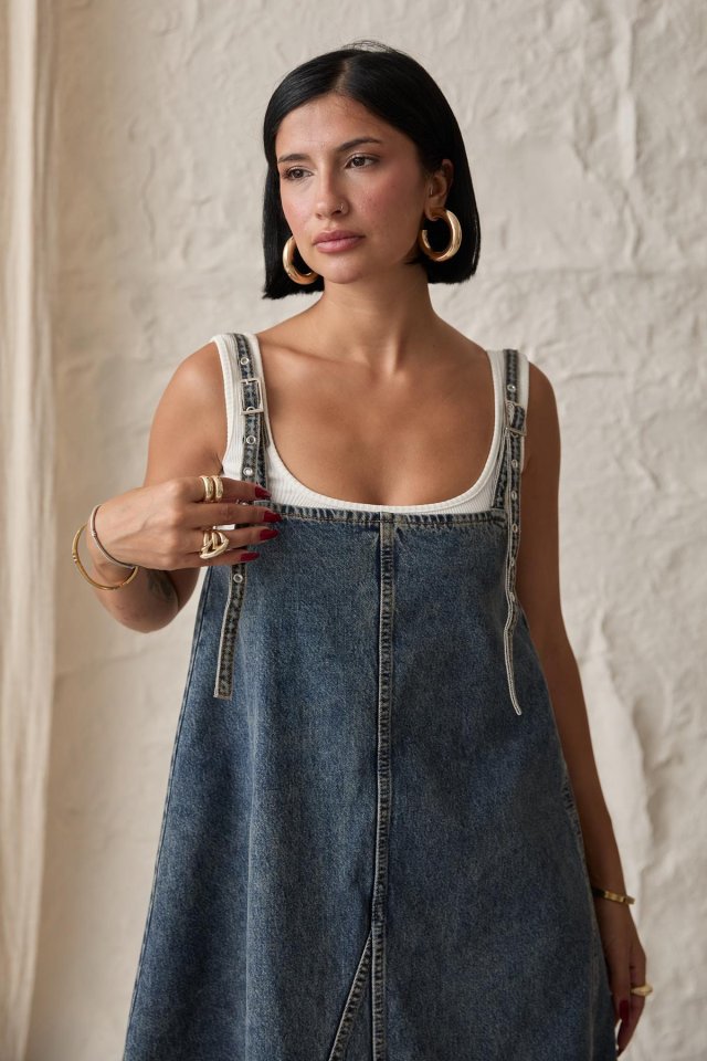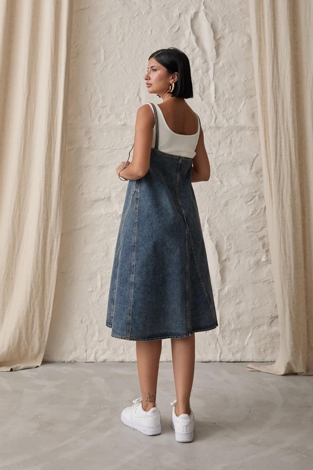 Mavi Askı Aparatlı Kot Elbise
