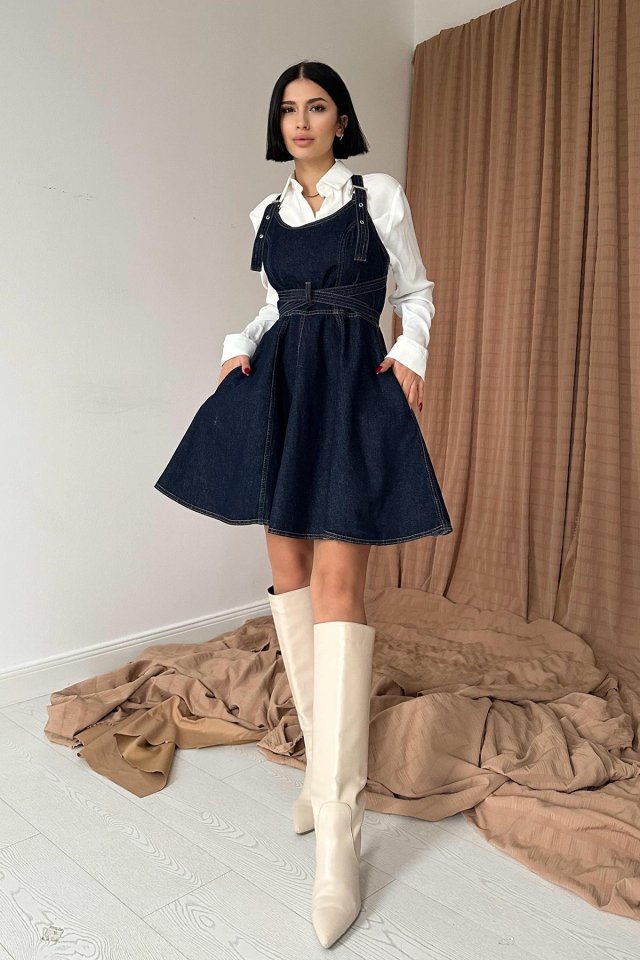 Mavi Kuplu Kot Elbise