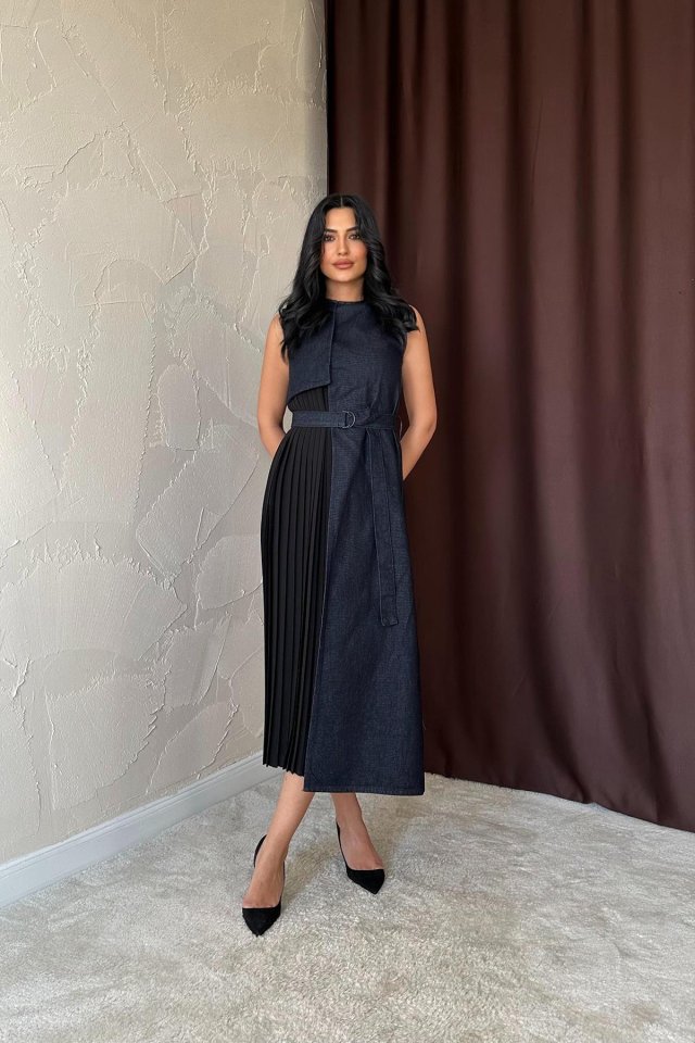 Mavi Pilise Garnili Kot Elbise