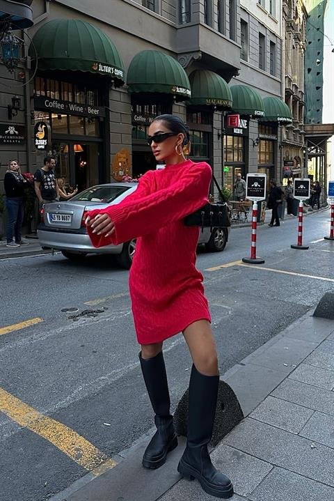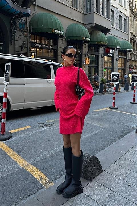 Melanie Örgü Desen Mini Elbise 2537-02