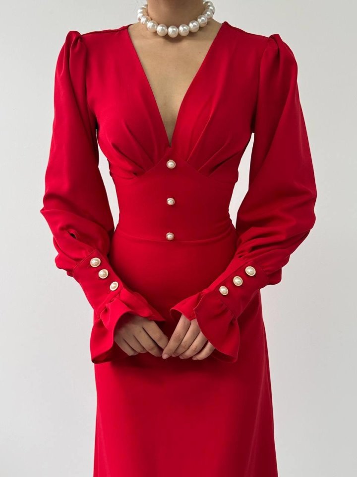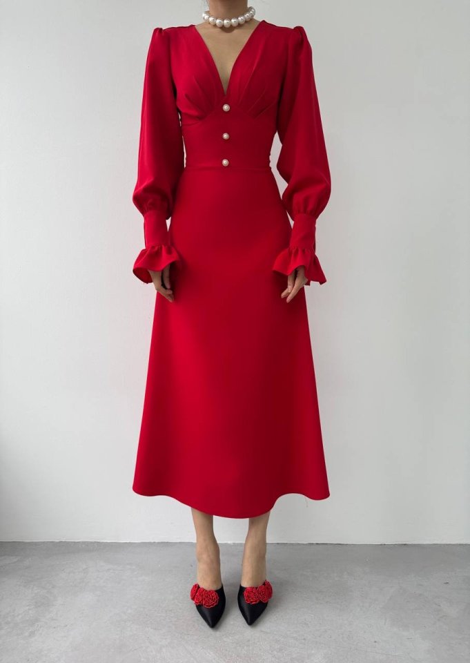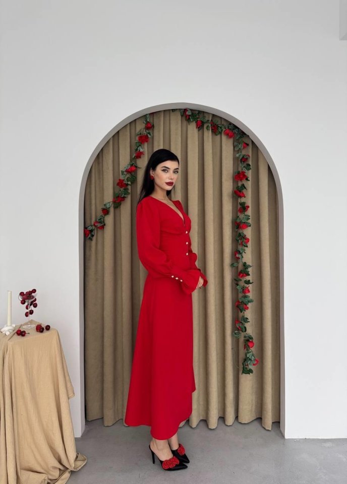 “Meta Düğme Detaylı Elbise” için yorum yapan ilk kişi siz olun