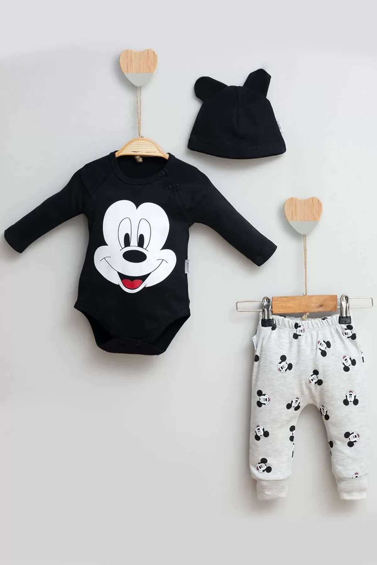 Mickey Desenli Şapkalı 3’lü Erkek Bebek Takımı