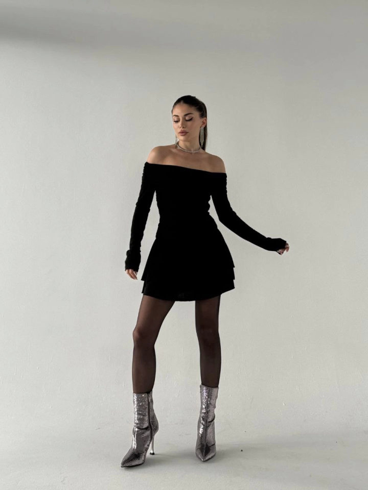 Mını Fırfırlı Elbise – Siyah