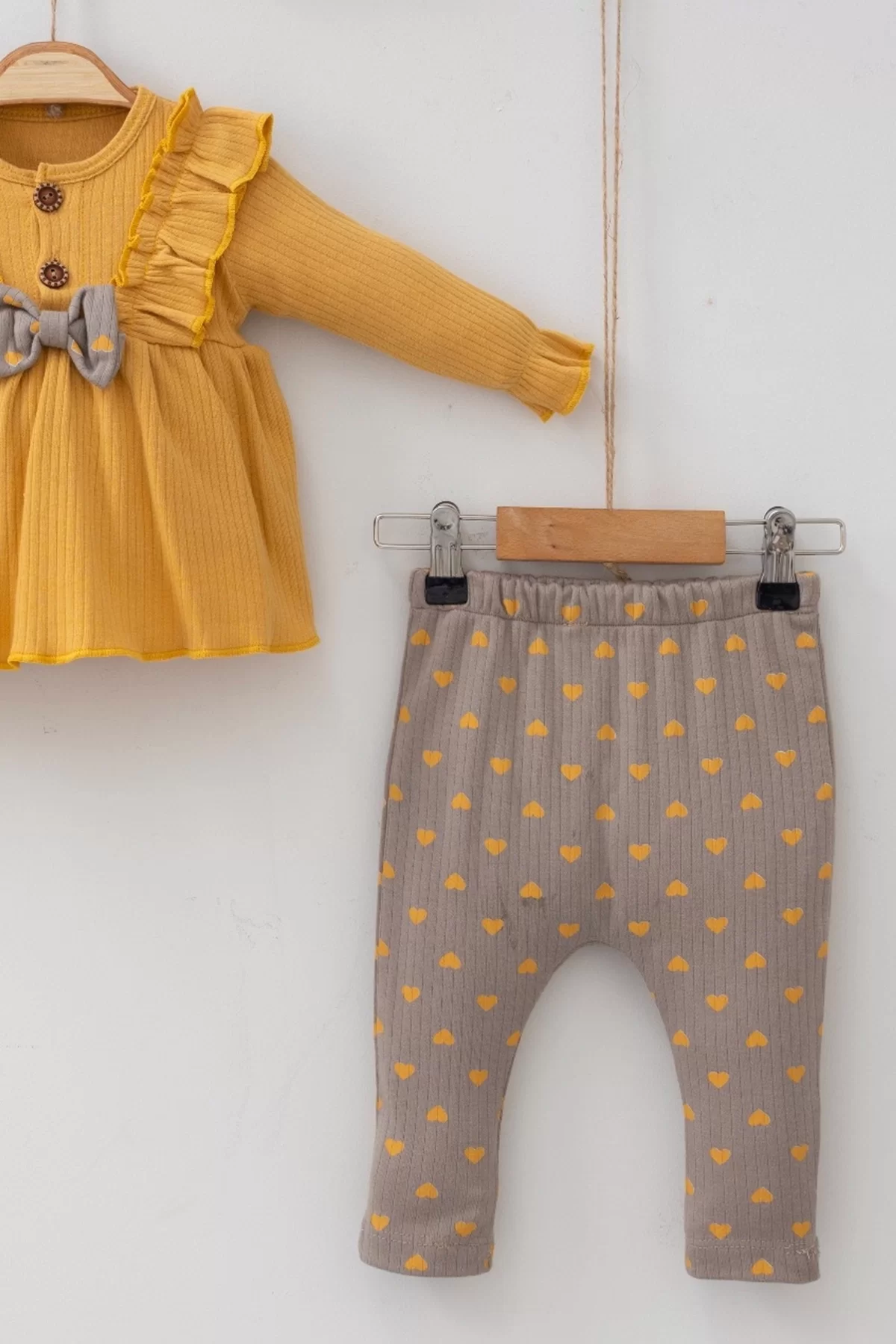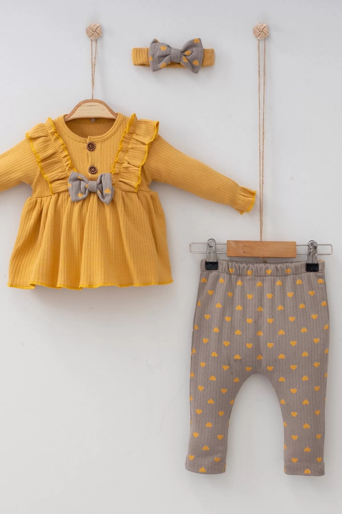 Minik Kalpli Fırfırlı Bandanalı 3’lü Kız Bebek Takımı