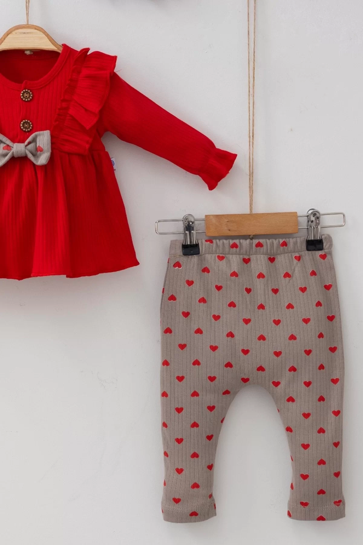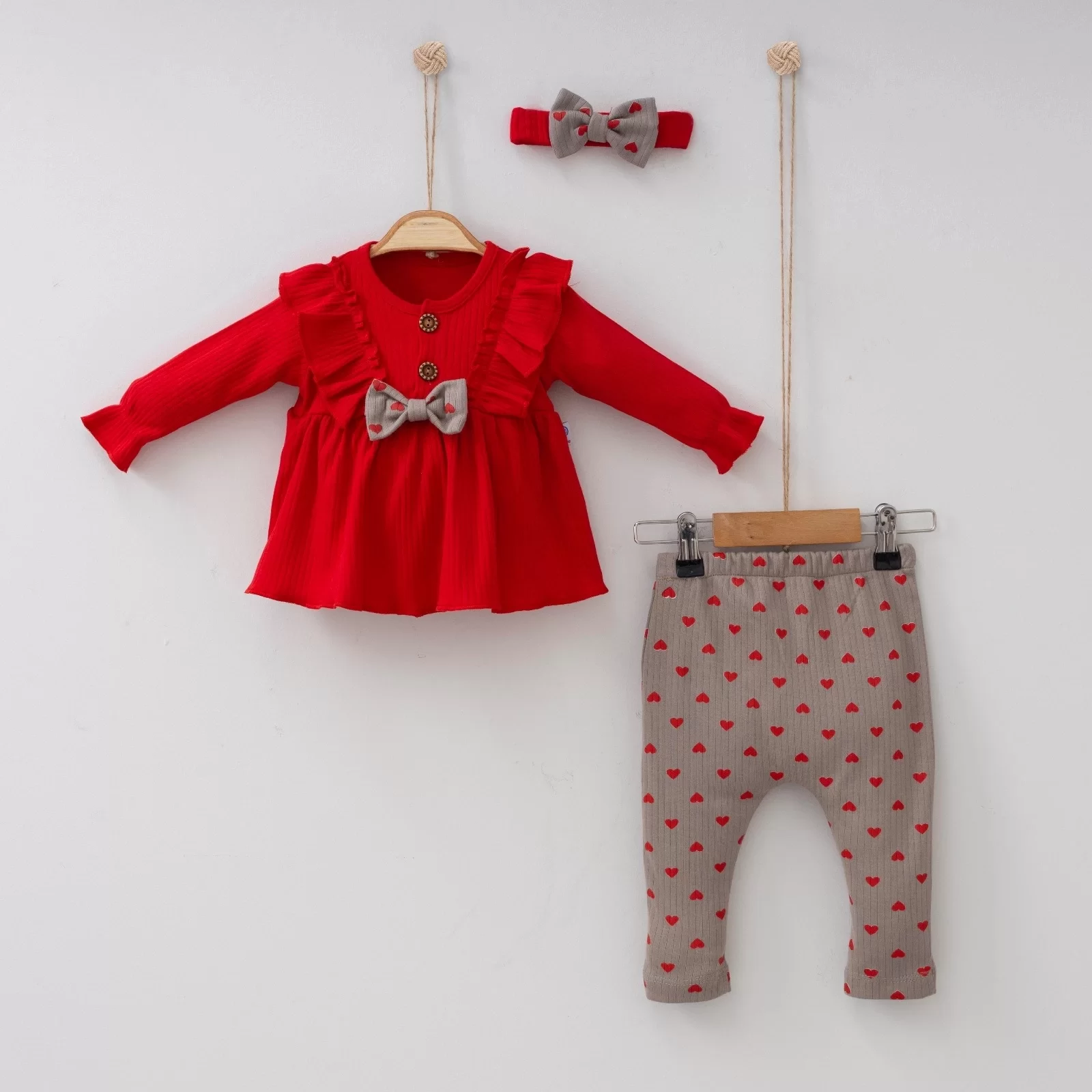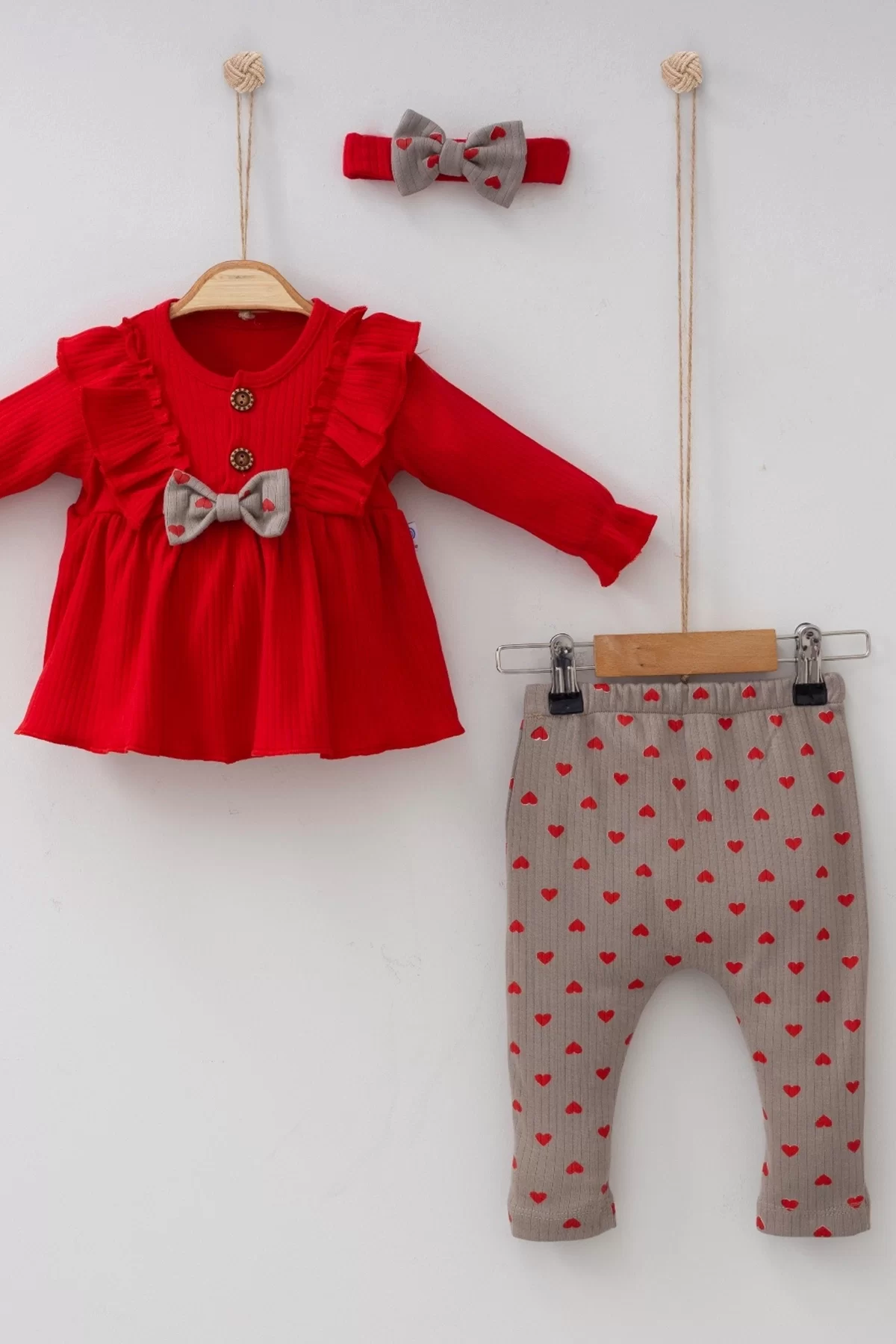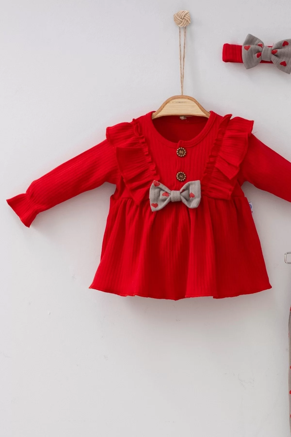 Minik Kalpli Fırfırlı Bandanalı 3’lü Kız Bebek Takımı