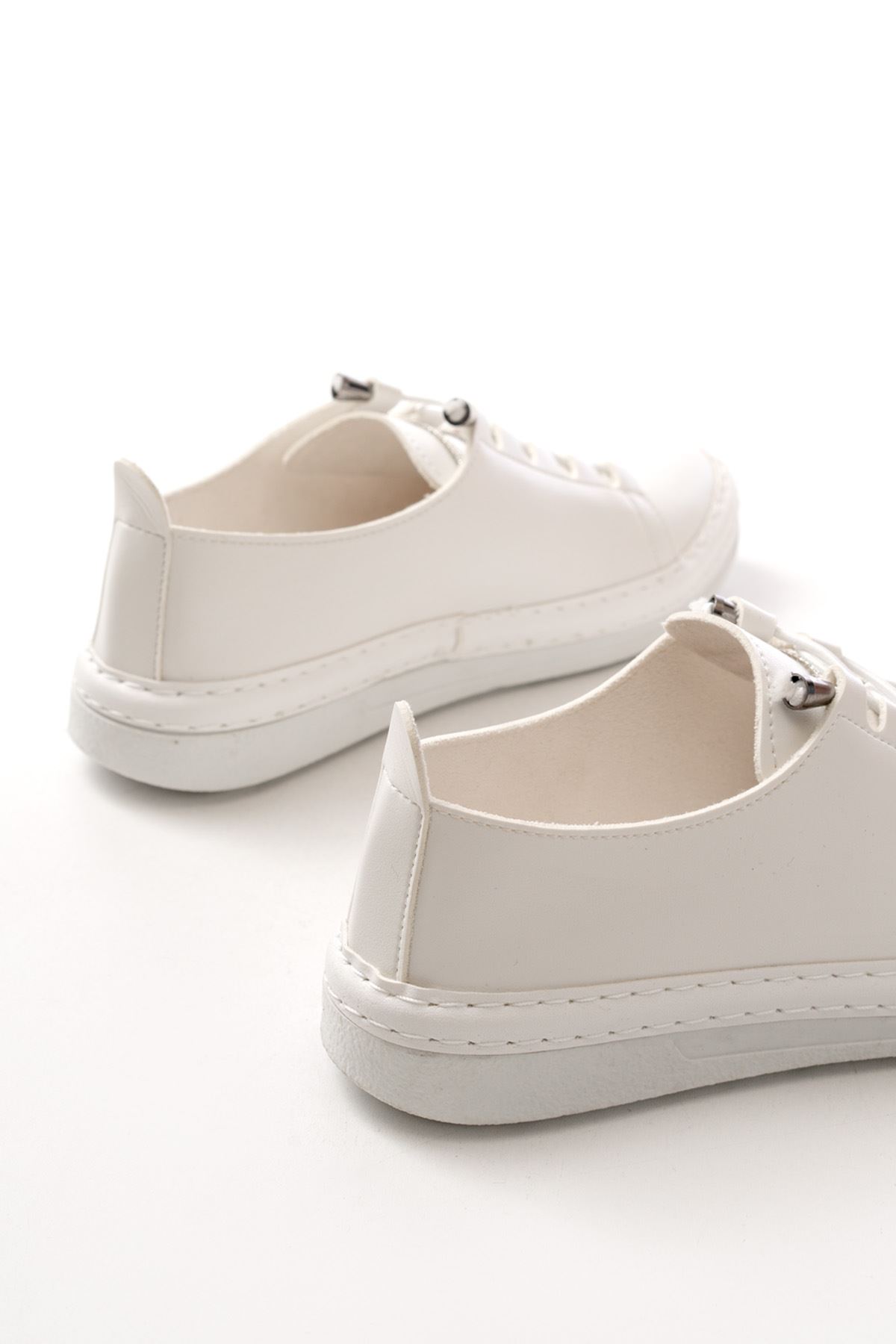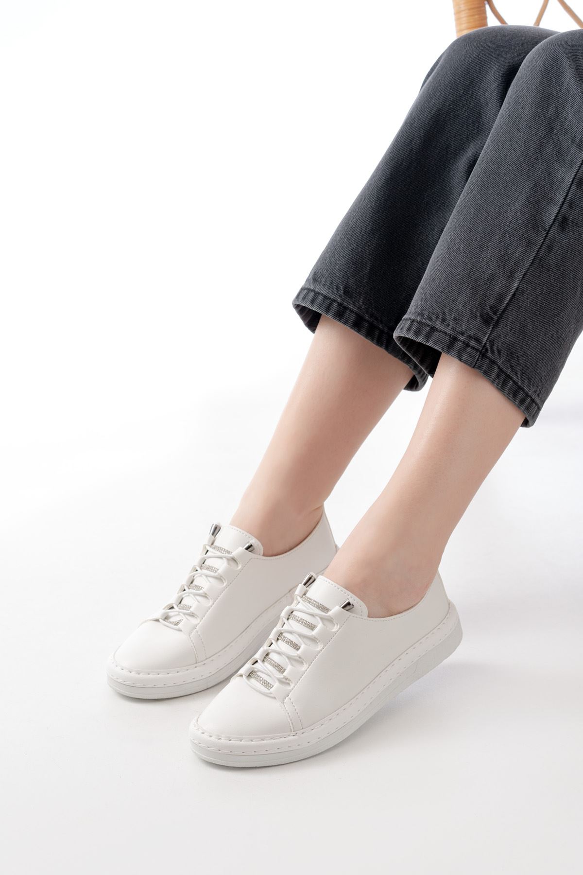 MK-9026 Beyaz Bağcıklı Taş Aksesuarlı Günlük Spor Ayakkabı