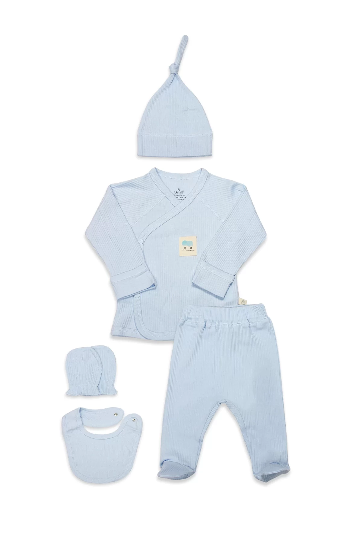 Minik Centilmen Ayı Nakışlı 10lu Zıbın Takımı Hastane Çıkışı Mavi