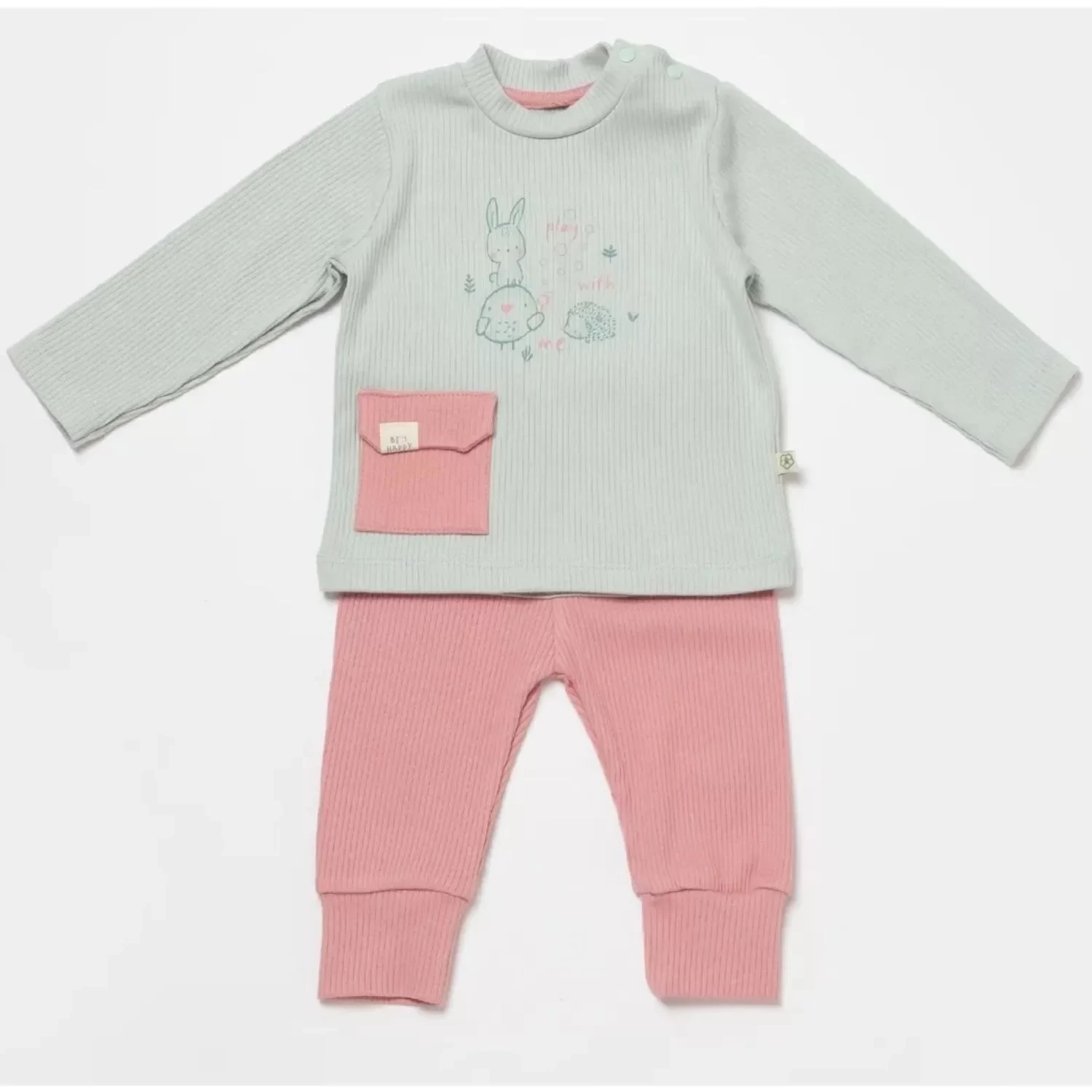 Bebek takımı pamuklu kumaştan üretilmiştir.
