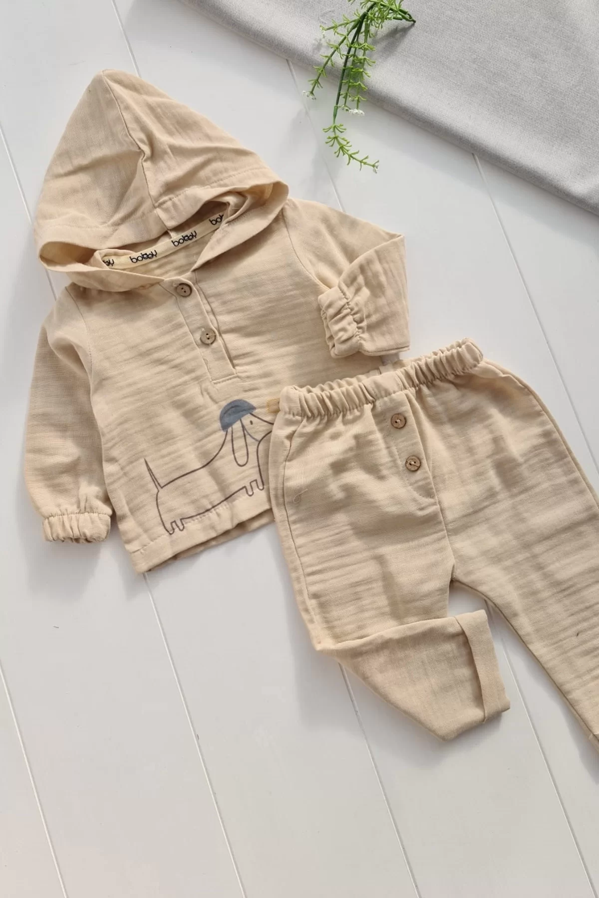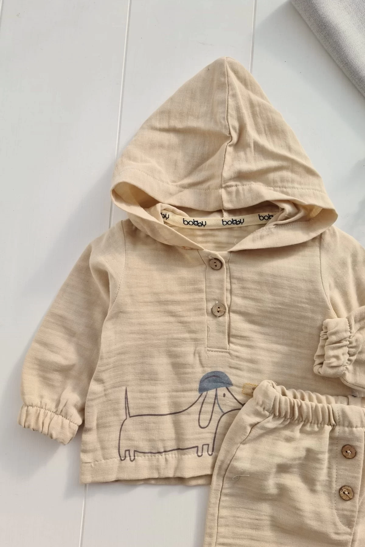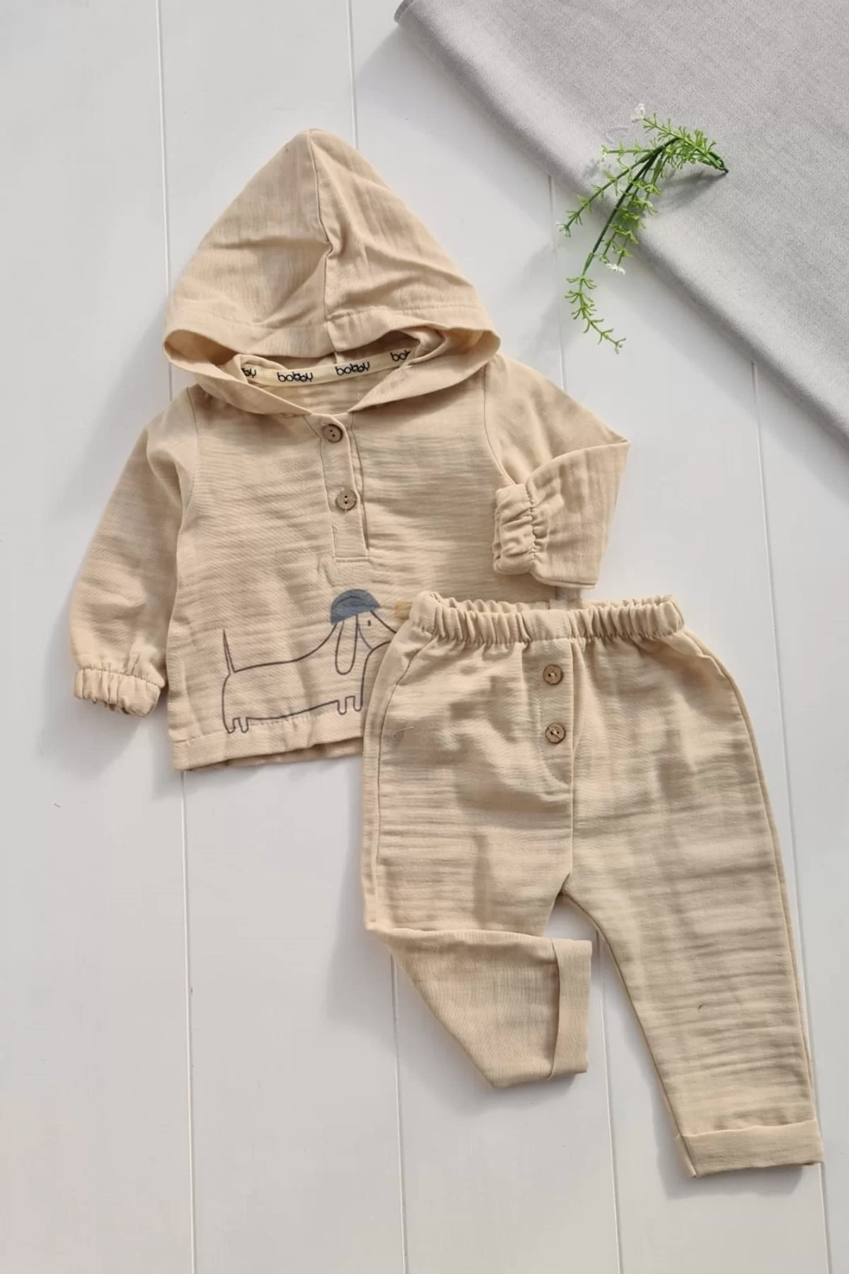Müslin Kumaş long Dog Desenli Pamuklu Erkek Bebek Takımı.