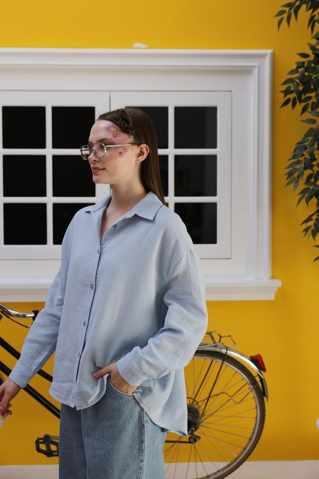 Müslin Uzun Kol Gömlek – Bebe Mavisi