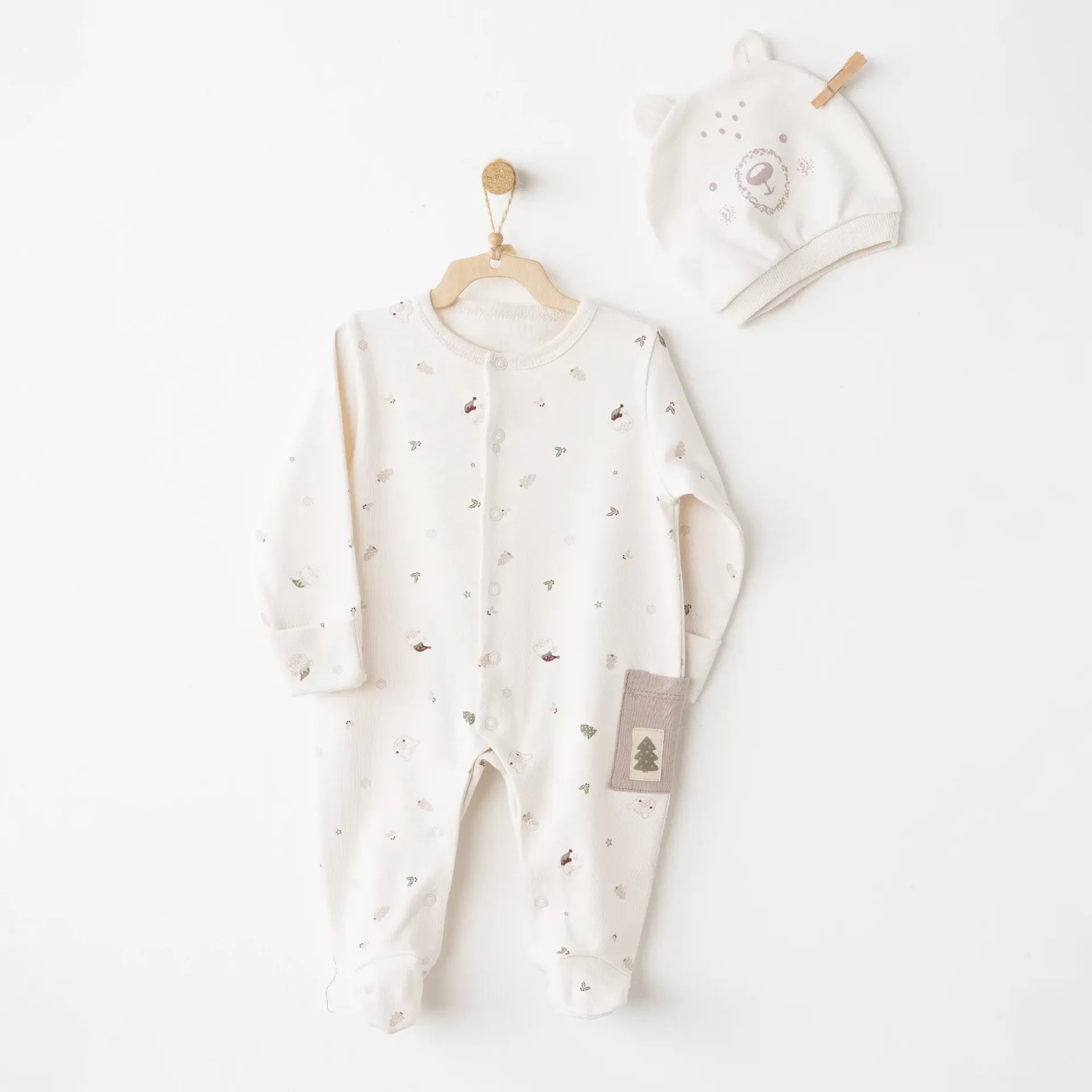 Kalpli Uçan Balon Nakışlı 10lu Zıbın Takımı Hastane Çıkışı Ekru