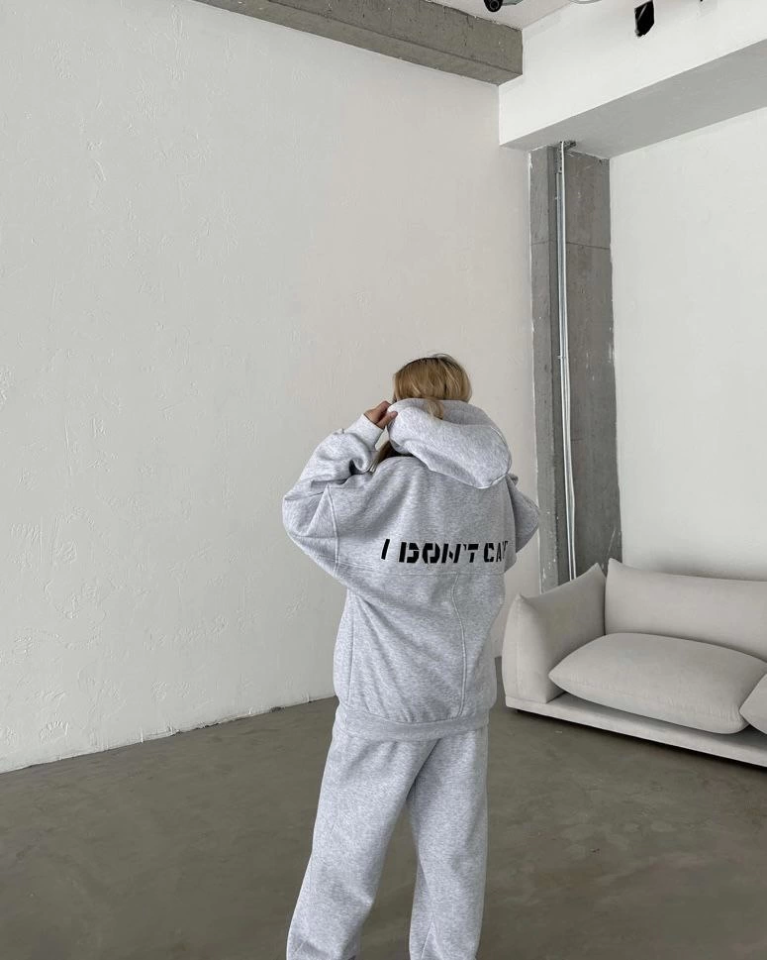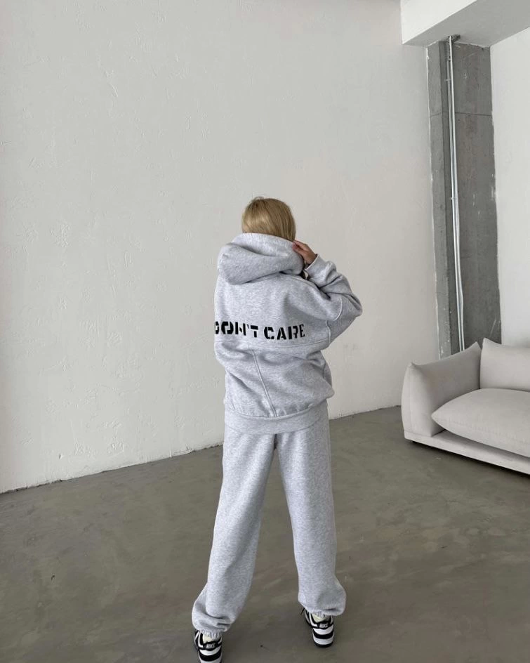 Nakış İşlemeli Üç İplik Sweat Takım- Gri