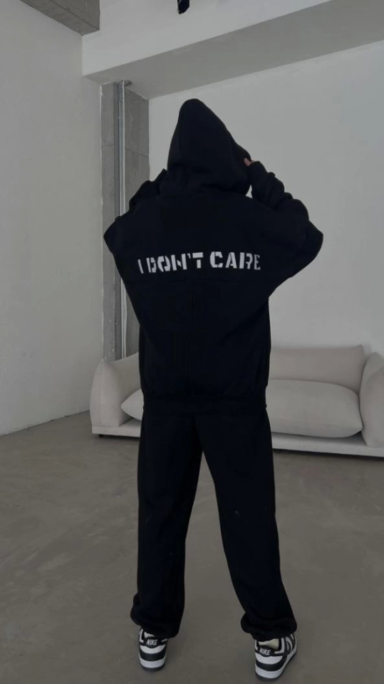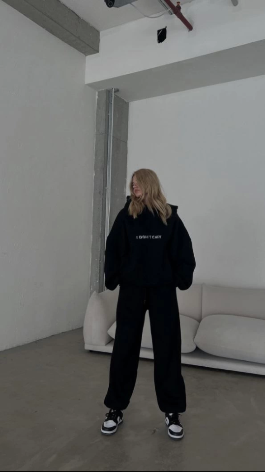 Nakış İşlemeli Üç İplik Sweat Takım- Siyah