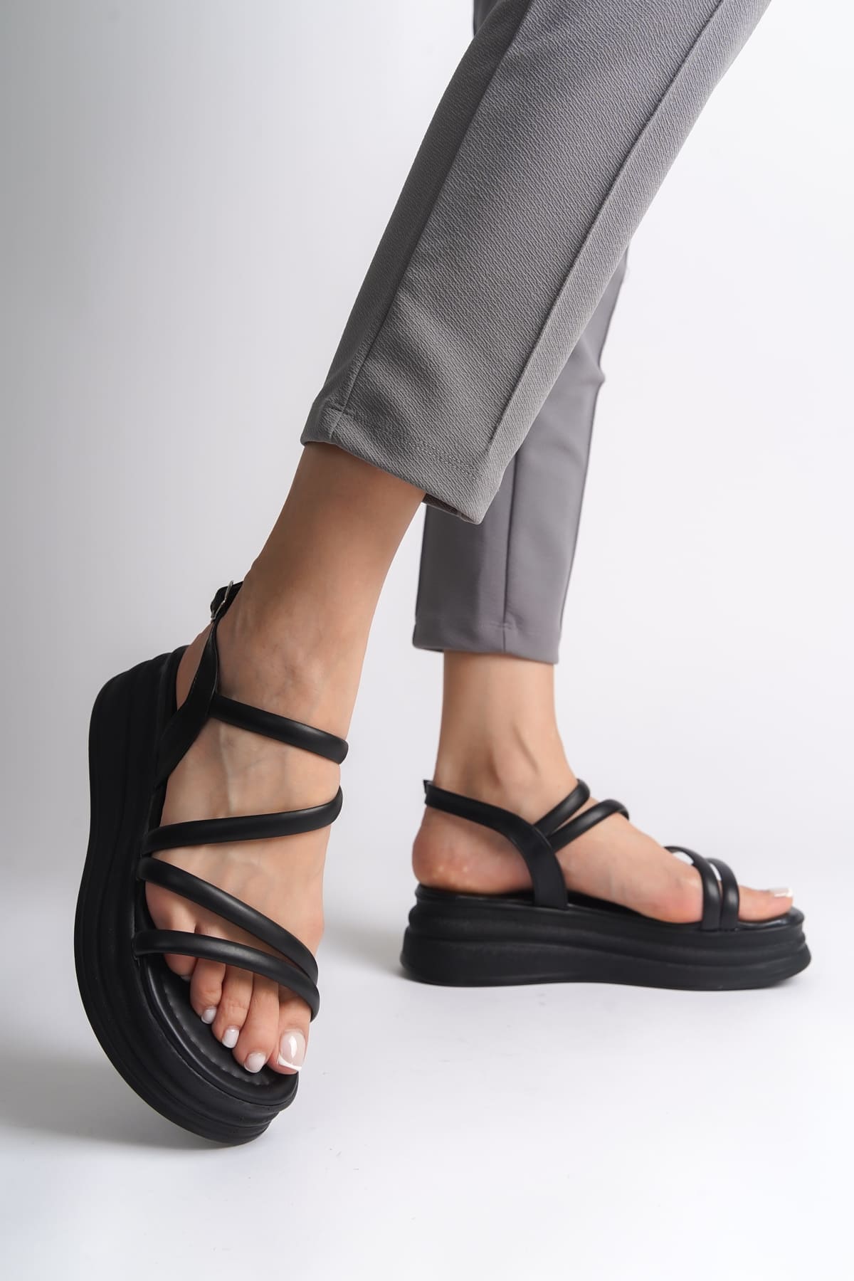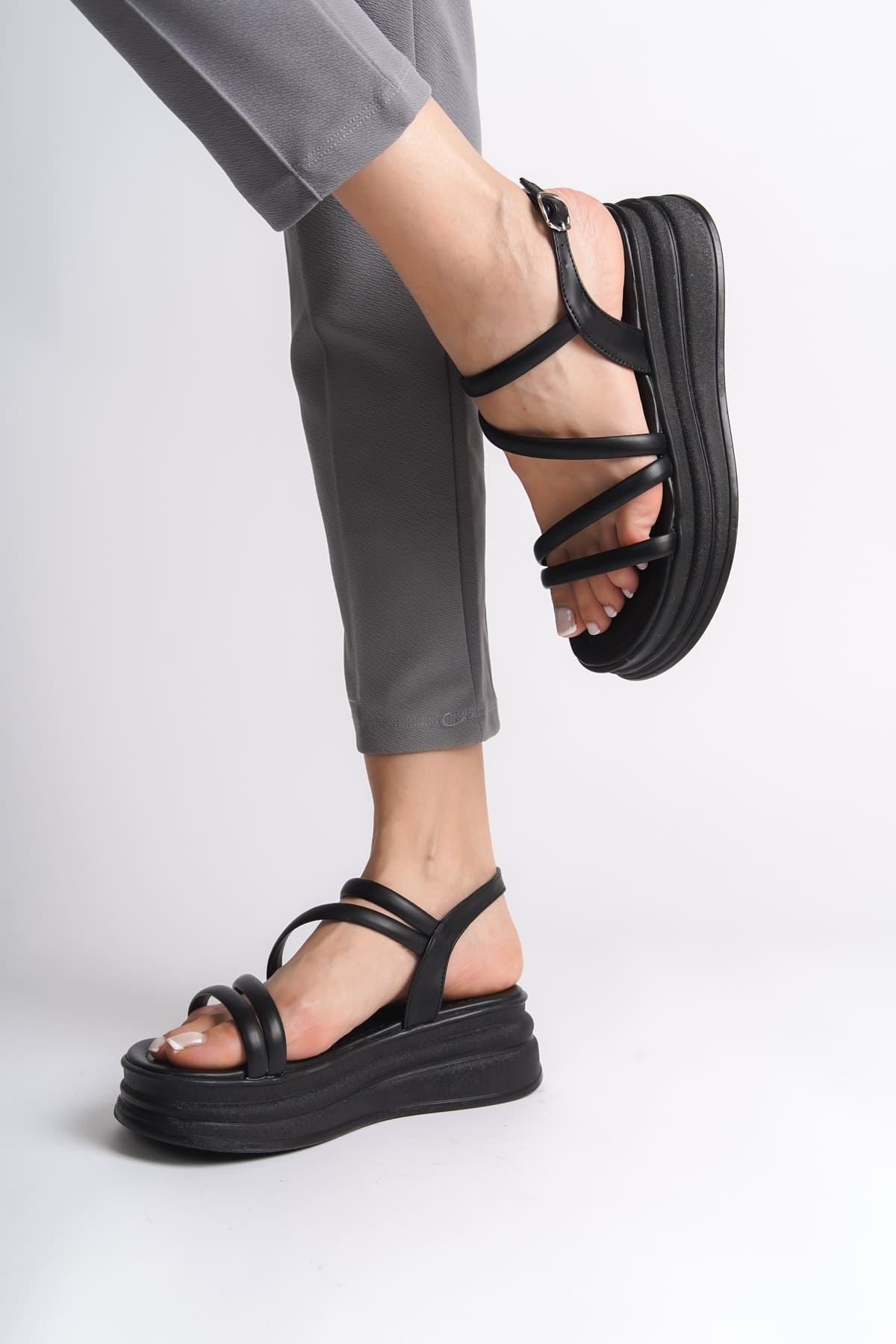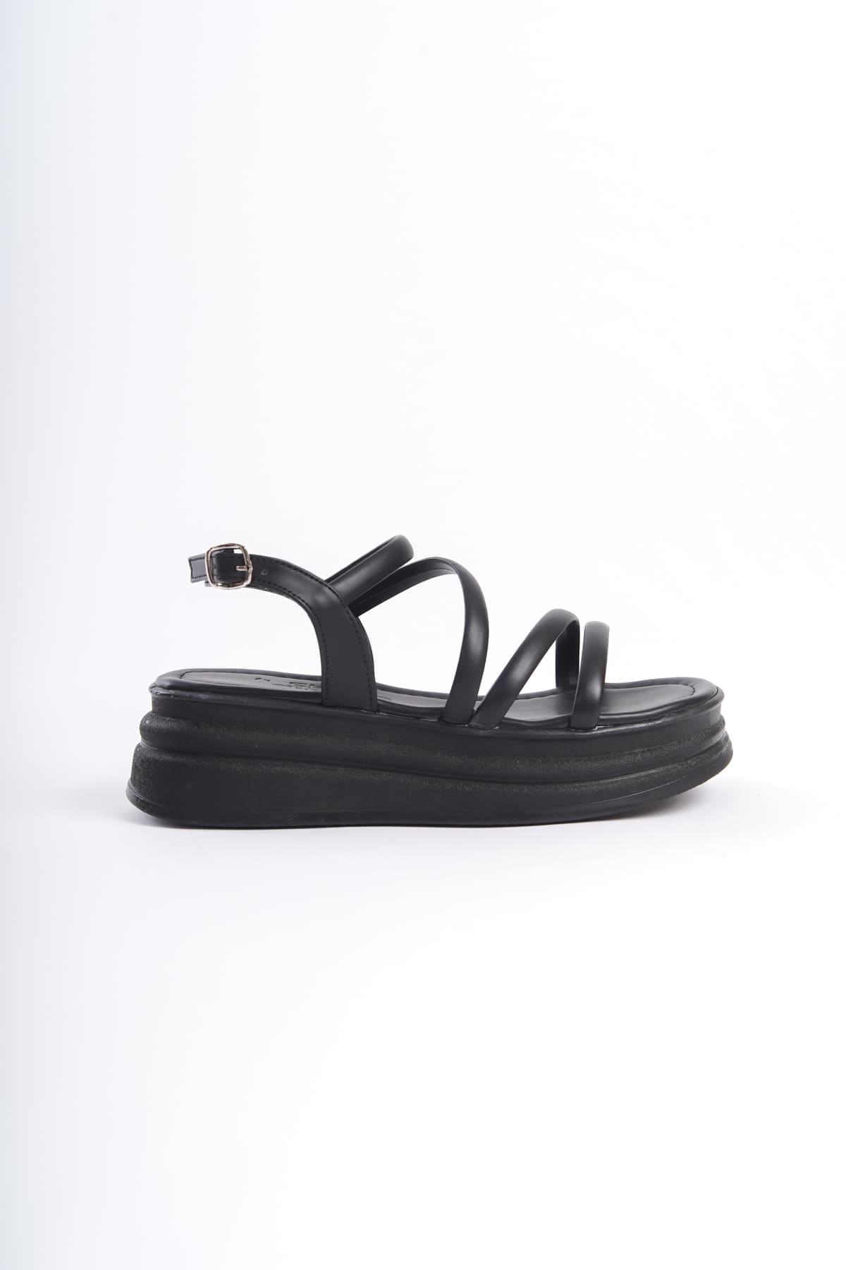 NATALIE İnce Tokalı Şerit Detaylı Ortopedik Taban Kadın Sandalet CST – Siyah